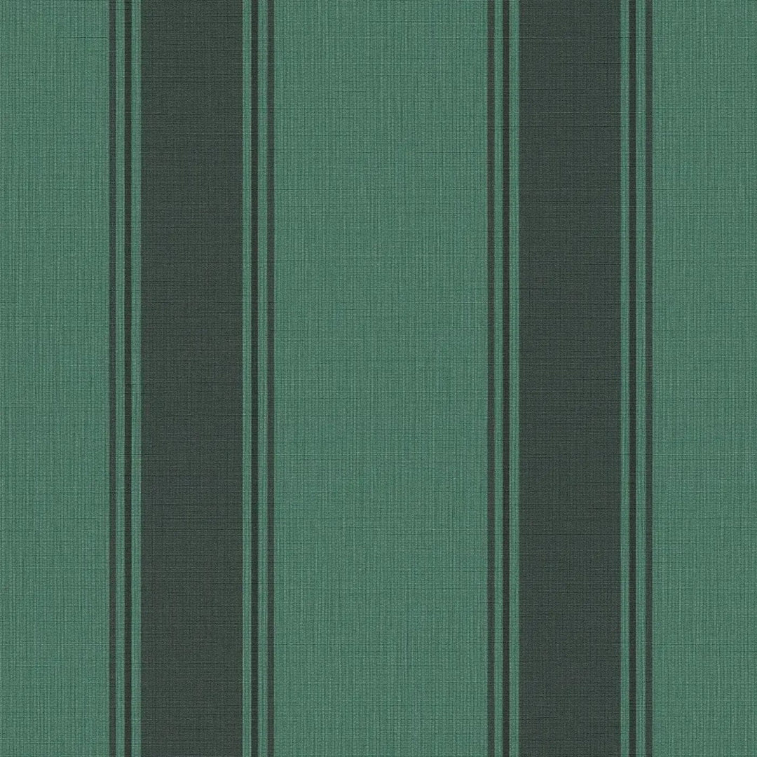 Tummanvihreä raidallinen tapetti, jossa on tekstiilitekstiili, luo ylellisen ja aristokraattisen tunnelman.