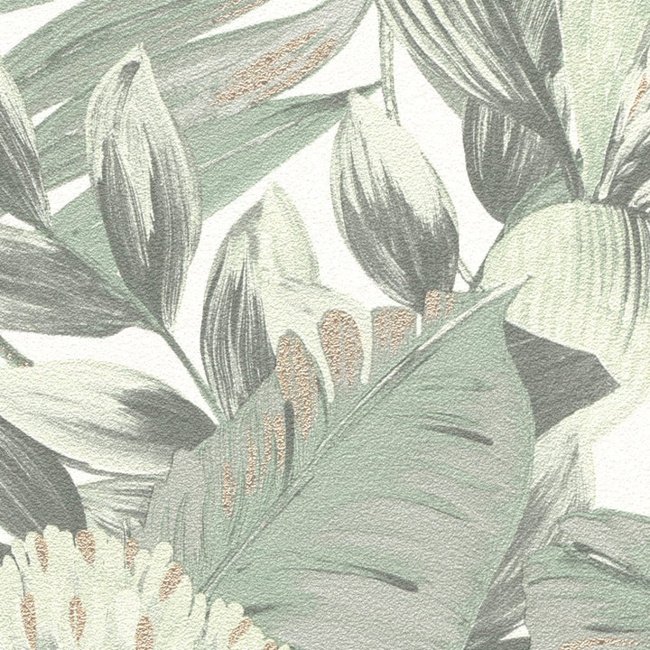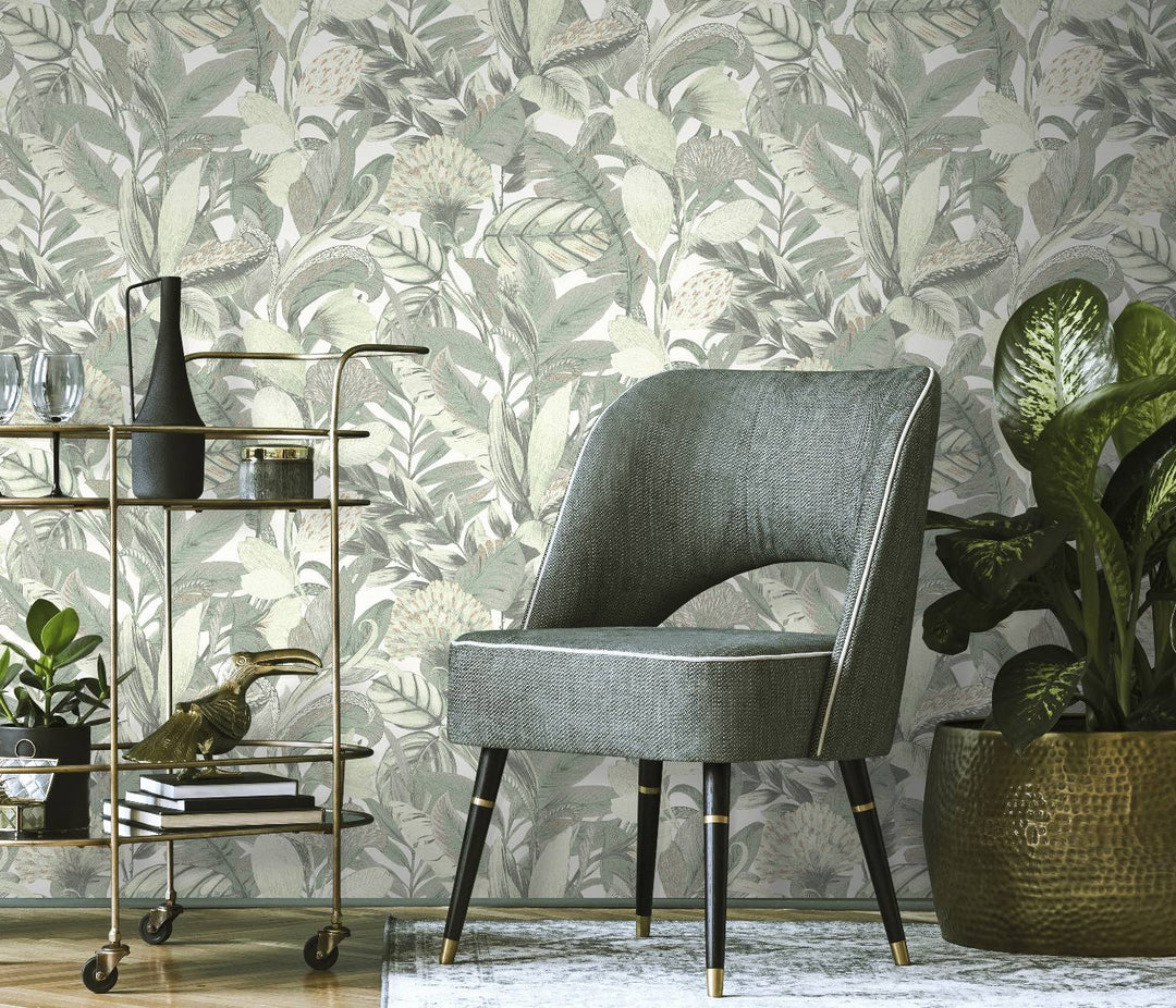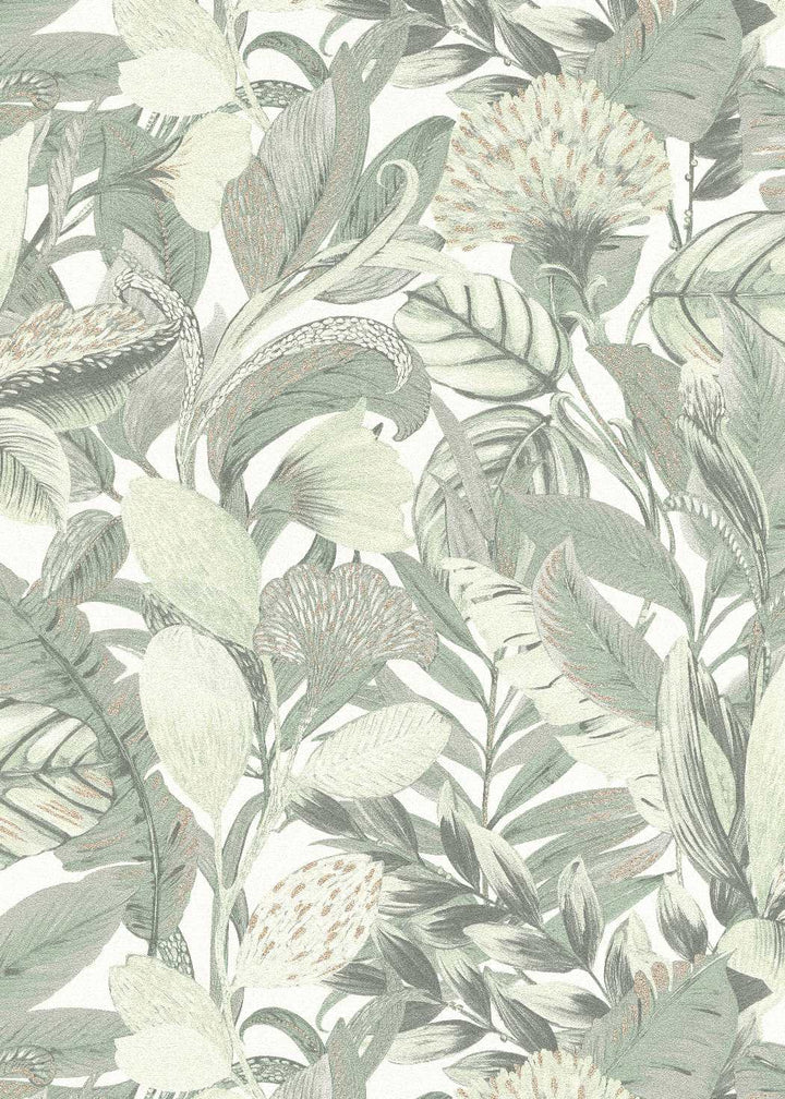 Tapetti 3710457 tarjoaa kasvitieteellisiä ja viidakkotapetteja, joissa on kirkkaanvihreitä lehtiä ja oksia. Tämä tapetti sopii täydellisesti minkä tahansa huoneen muuttamiseen trooppiseksi paratiisiksi, ja se tekee varmasti mistä tahansa tilasta kutsuvan ja kiehtovan.