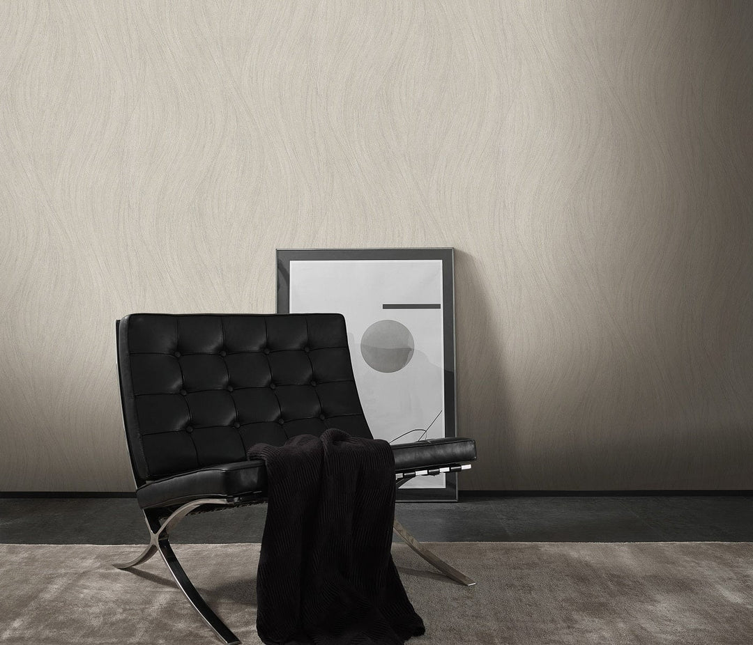 Tässä tapetissa on hienovarainen aaltoileva kuvio ja mattapintainen pinta, jossa on kiiltäviä elementtejä, jotka antavat hieman kuvioidun vaikutelman. Nämä Tapetit tulevat neutraalissa beigen sävyssä, joka täydentää erilaisia sisustuksia.