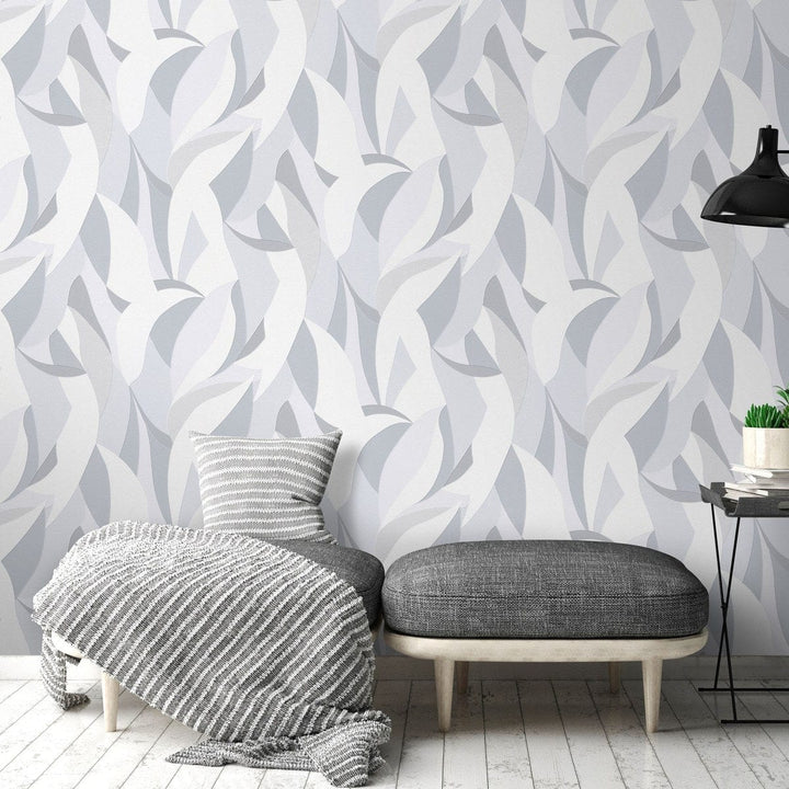 Taustakuva, jossa on suuria tyyliteltyjä lehtiä harmaan sävyissä - 3741626