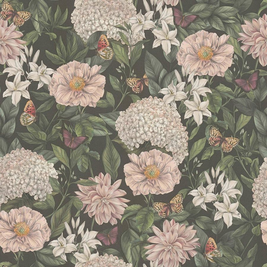 Tapetes ar ziediem un tauriņiem, matētas: zaļā, rozā, 394261 AS Creation
