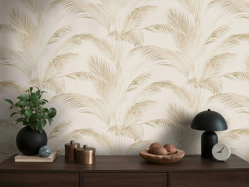 Kermanvärinen tapetti, jossa on metallinen kiilto ja tekstiilirakenne, 1235352