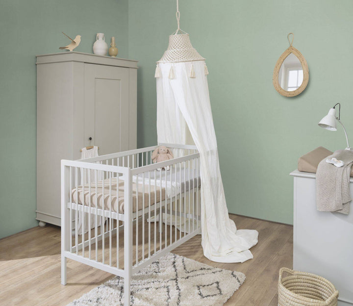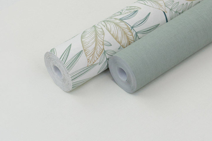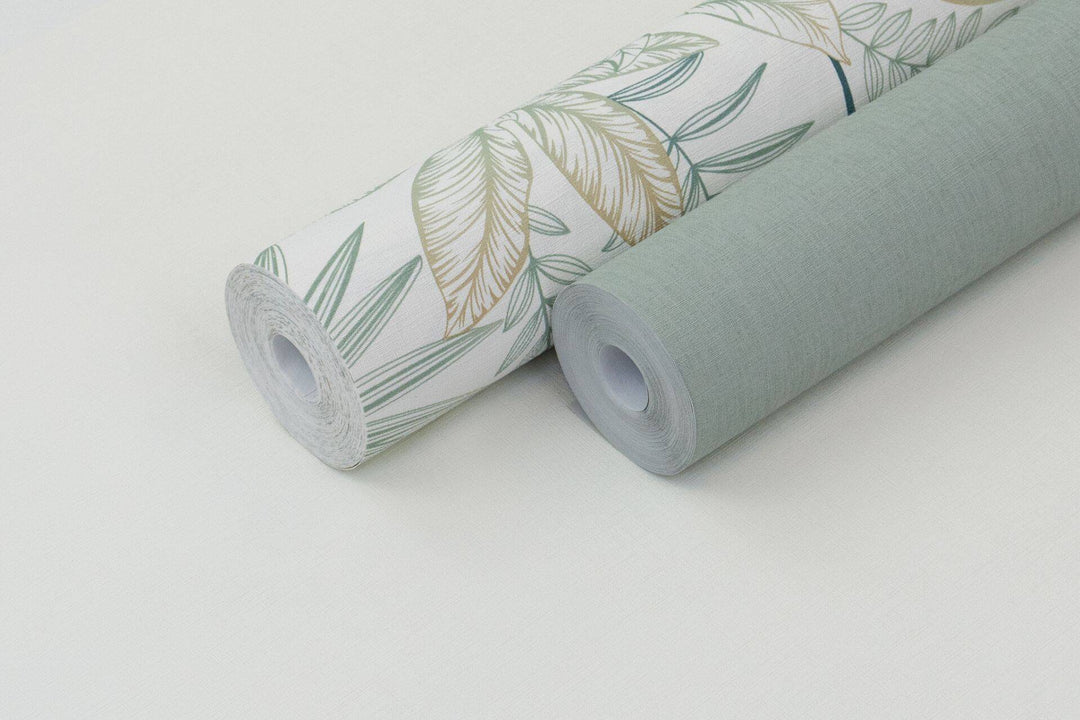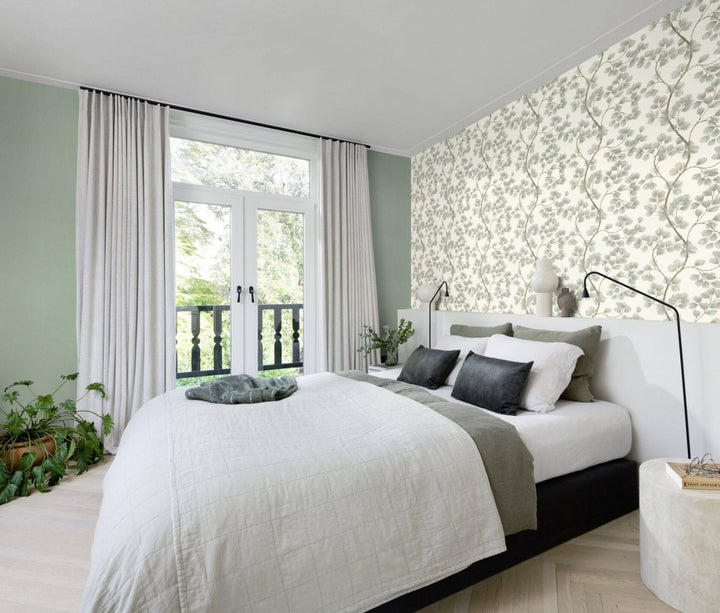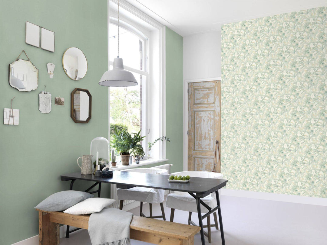 Vaalean salviavihreän käyttö voi luoda upean taustan huonekaluille ja kodin tarvikkeille. Kevyt tekstiilirakenne antaa tapetille erityisen ilmeen. Se sopii hyvin valkoisten, puun ja katseenvangitsijakuvioiden kanssa.