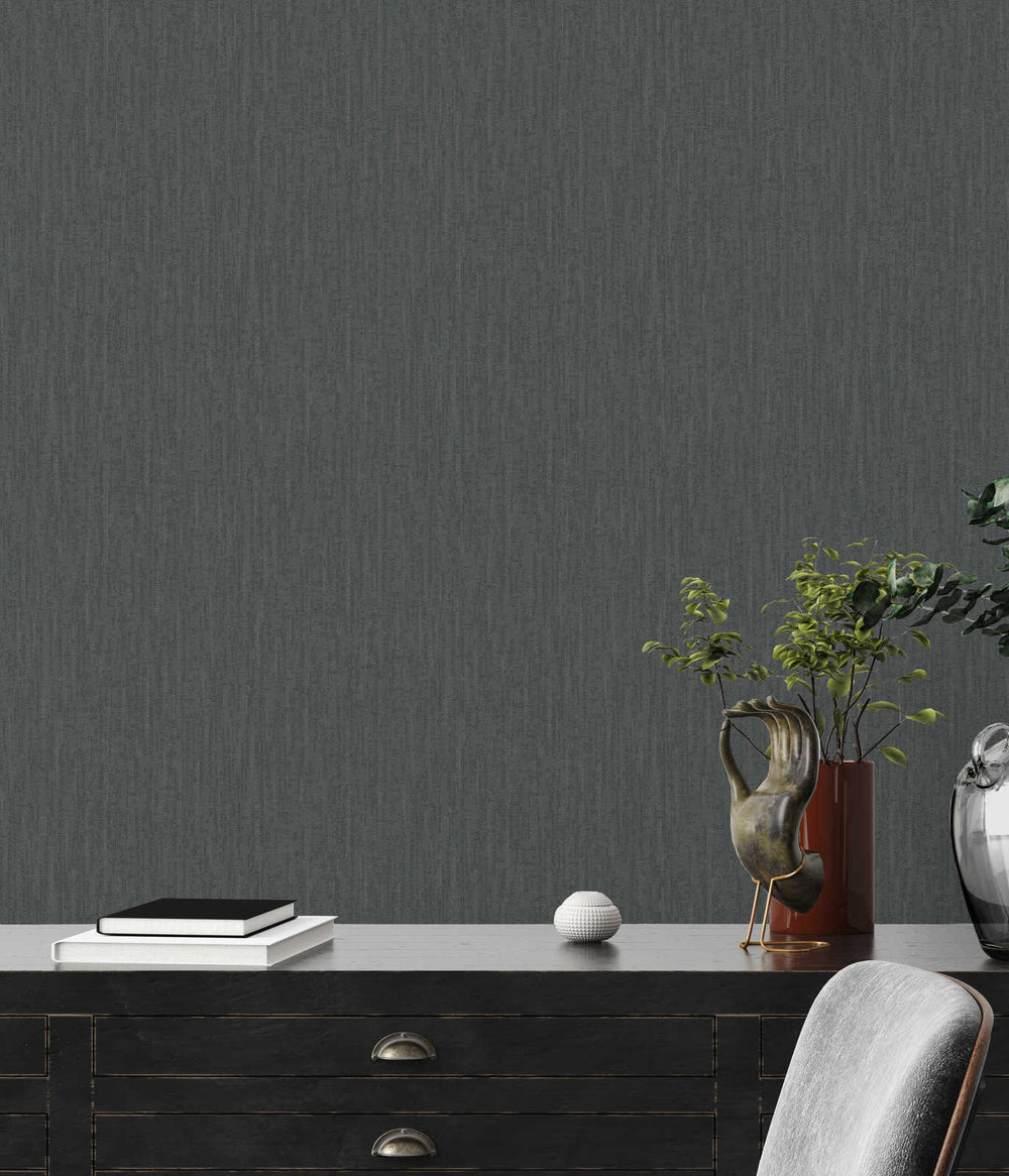 Vienkrāsaina tapete ar auduma struktūru: melnā krāsā, 393522 AS Creation