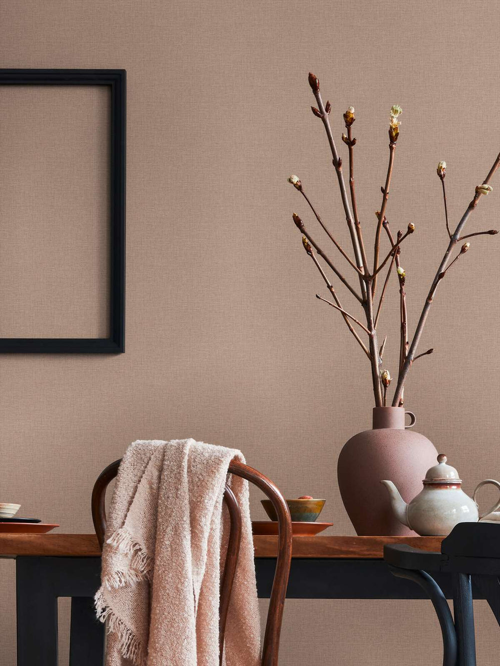 Vienkrāsainas tapetes ar lina struktūru rozā krāsā - 1364065 AS Creation