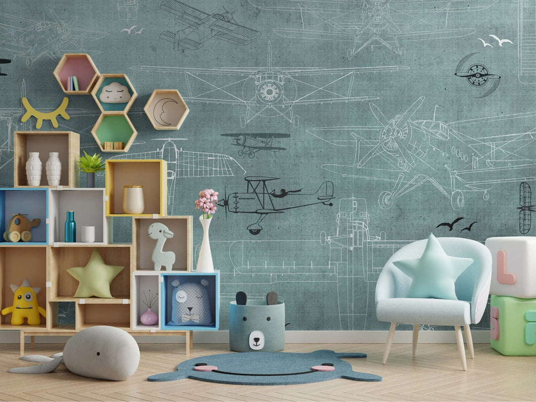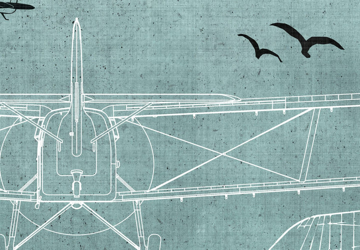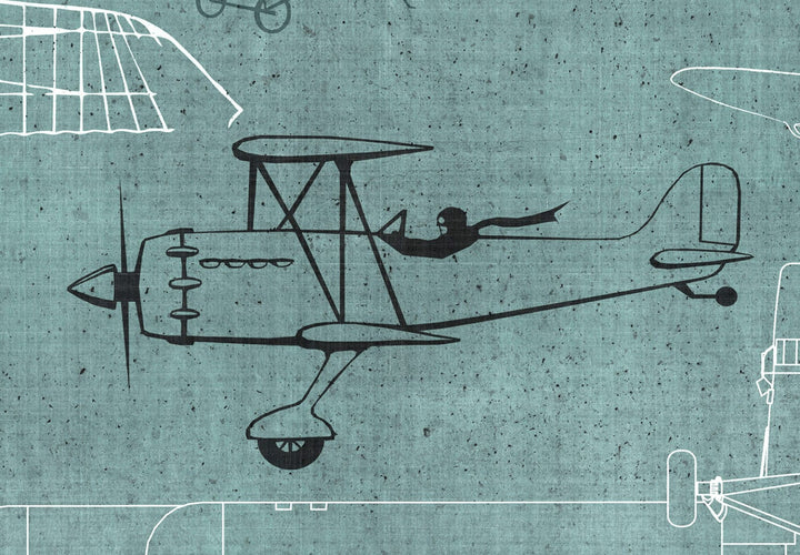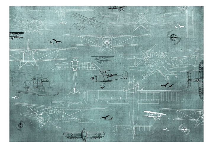 Valokuvatapetti - Piirroksia lentokoneista turkoosilla pohjalla, 149210