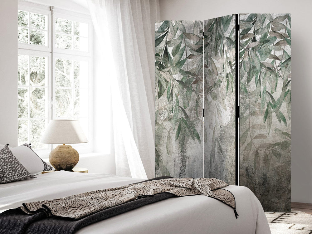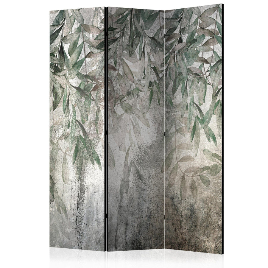 Dekoratīvais aizslietnis ar zaļam lapām uz betona faktūras, 3 daļas ART