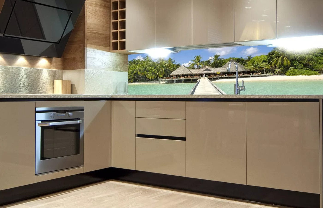 Uusimmat keittiön suunnittelutrendit keskittyvät itseliimautuviin valokuvatapetteihin keittiön backsplashissa. Keittiön takaseinän laatoittamisen sijaan se voidaan peittää kalvolla.
