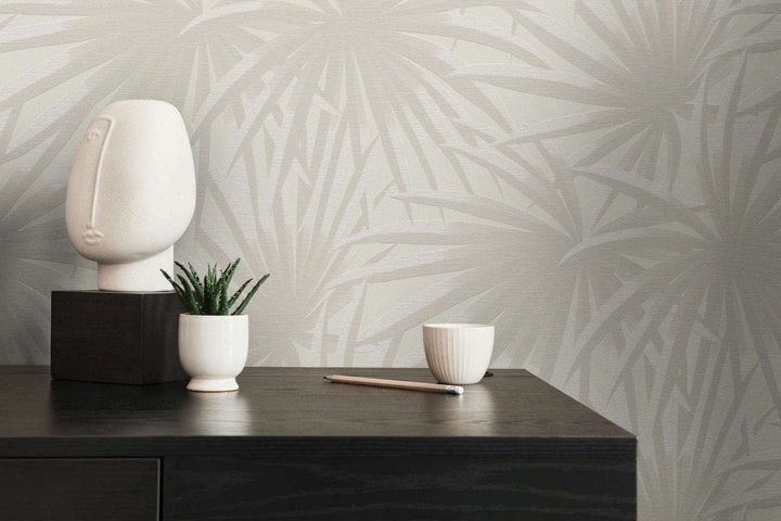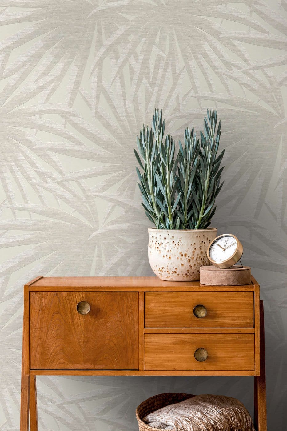 Pehmeissä väreissä palmunlehtikuvioitu tapetti - taupe-väri - 1400245