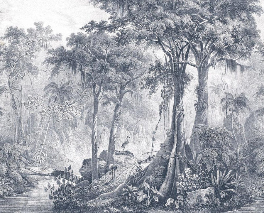 Valokuvatapetti viidakko ja palmuja harmaan sävyissä, RASCH, 2046017, 318x265 cm