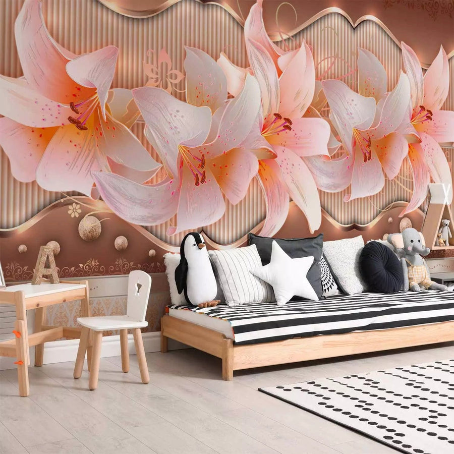 Fototapetes - lilijas uz smalka fona ar rakstu un mirdzumu, 64484  G-ART