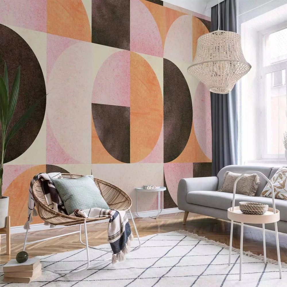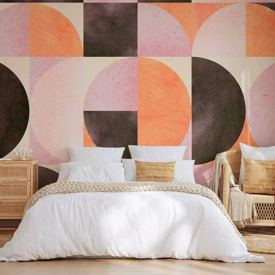 Fototapetes - simetriskas apļi un kvadrāti siltos toņos - rozā, oranžā G-ART
