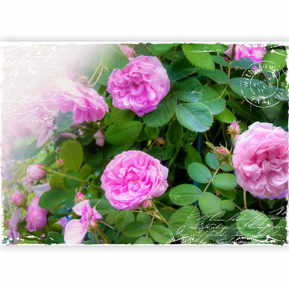 Skaistas fototapetes ar dārza rozēm un vairākiem uzrakstiem - 60326 G-ART