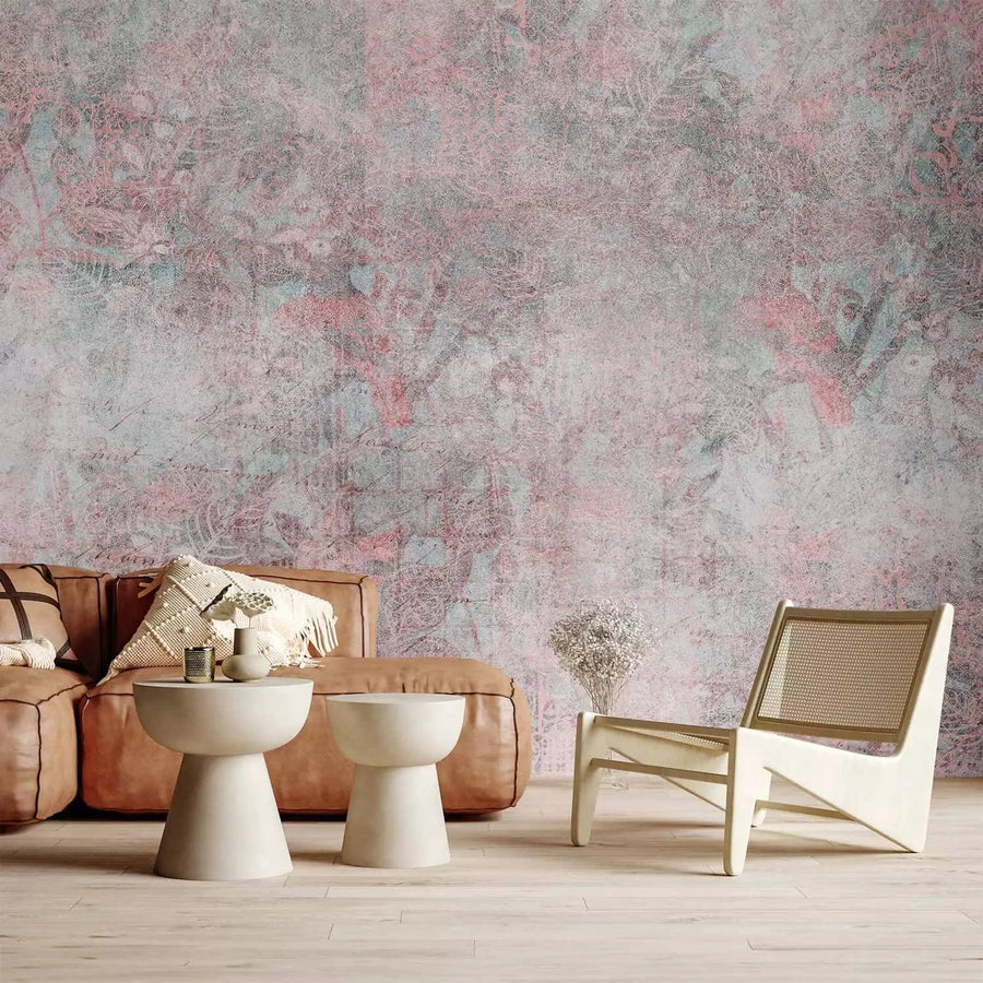 Valokuvatapetti - Vintage-koriste vaaleanpunaisen ja harmaan sävyissä - 143768