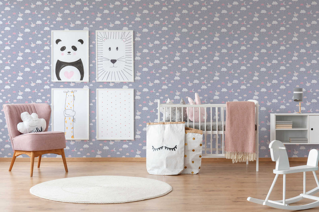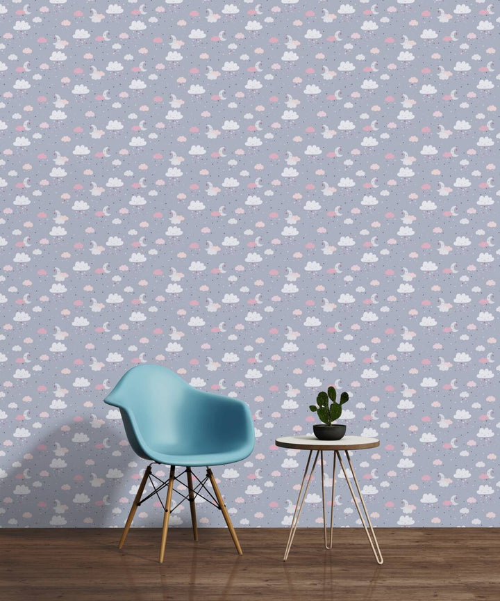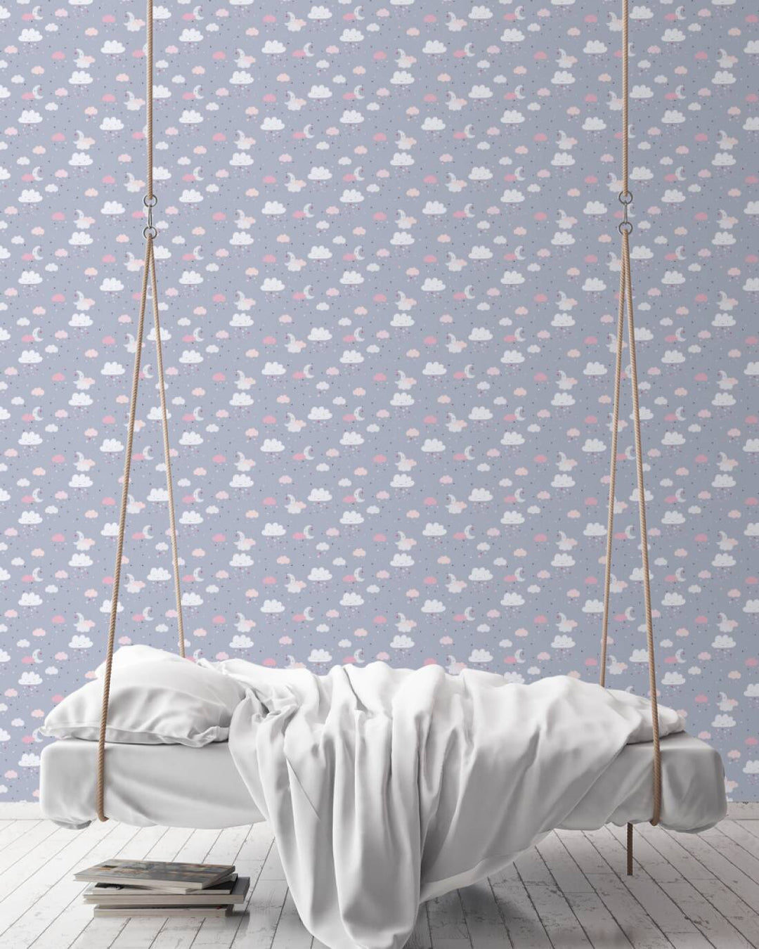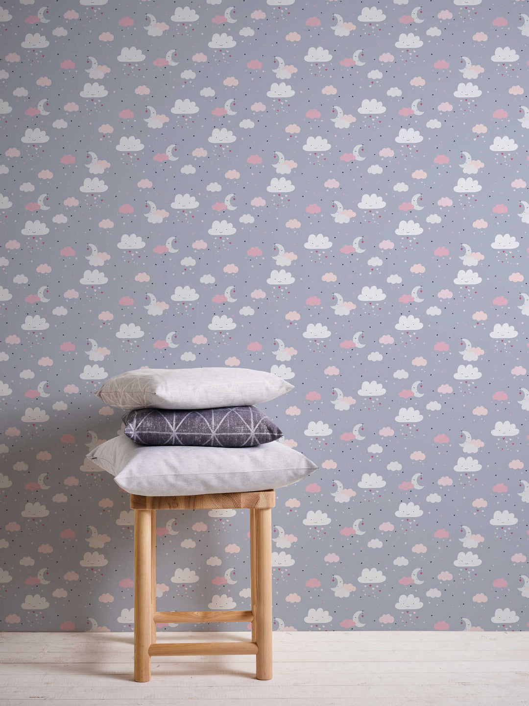 Lasten tapetti tyttöjen huoneeseen yötaivaalla, harmaa ja vaaleanpunainen, 1350503, Ilman PVC:tä 🌿