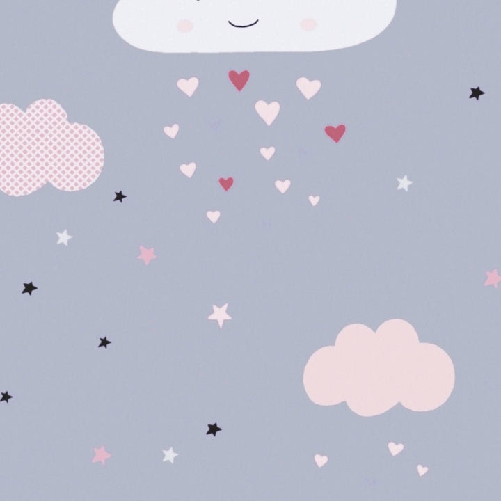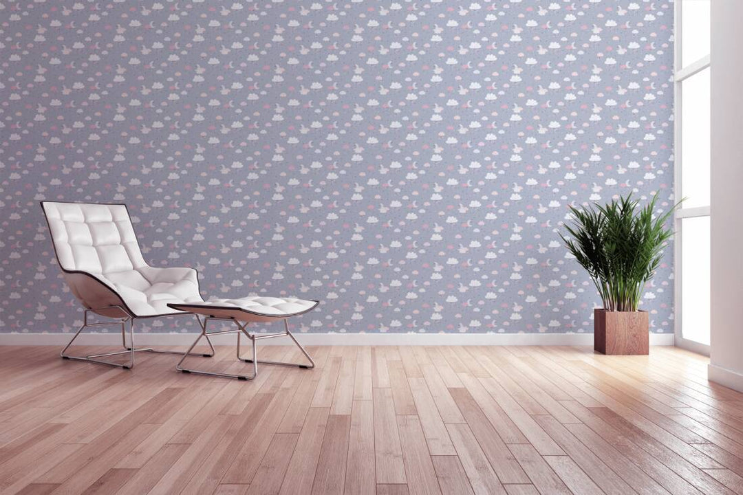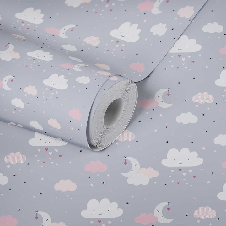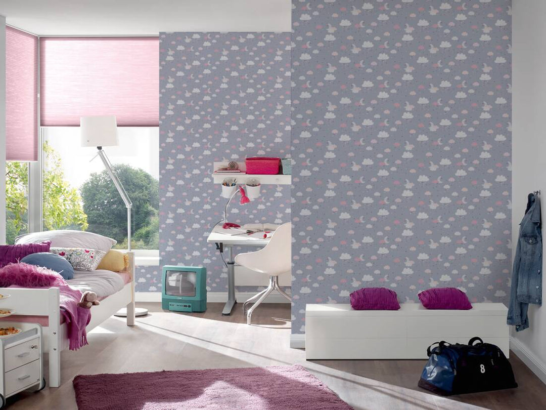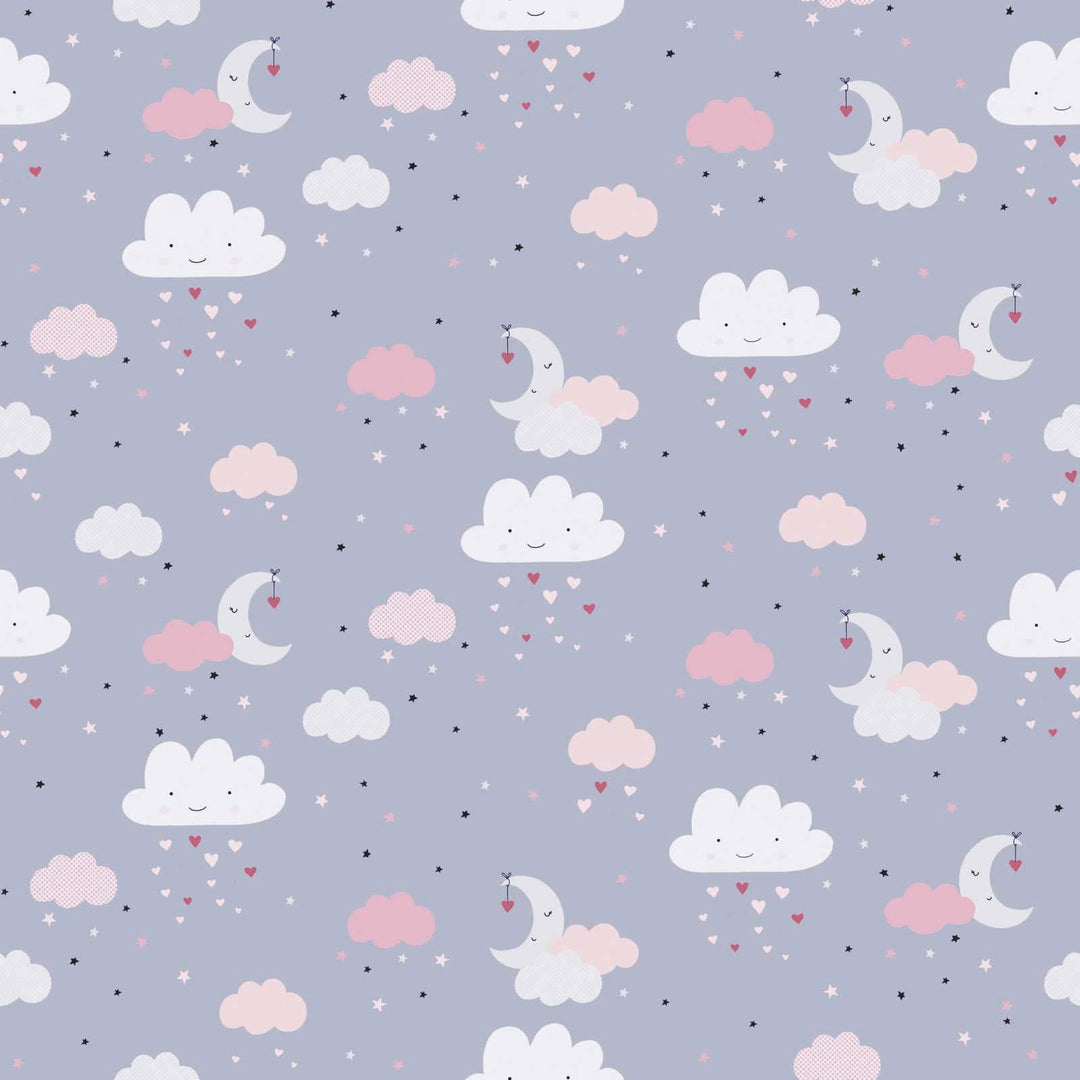 Lasten tapetti tyttöjen huoneeseen yötaivaalla, harmaa ja vaaleanpunainen, 1350503, Ilman PVC:tä 🌿