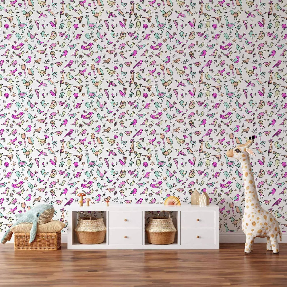 Valokuvatapetti lastenhuoneeseen maalatut linnut, 127219, (0,5x10m)