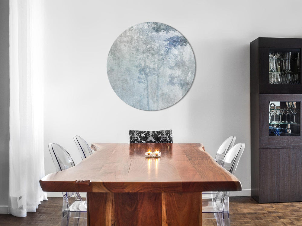 Pyöreä сanvas-taulut - Puut sumussa - maisema sinisen ja harmaan sävyissä, 151477