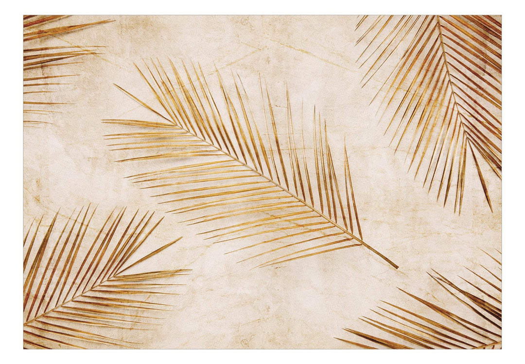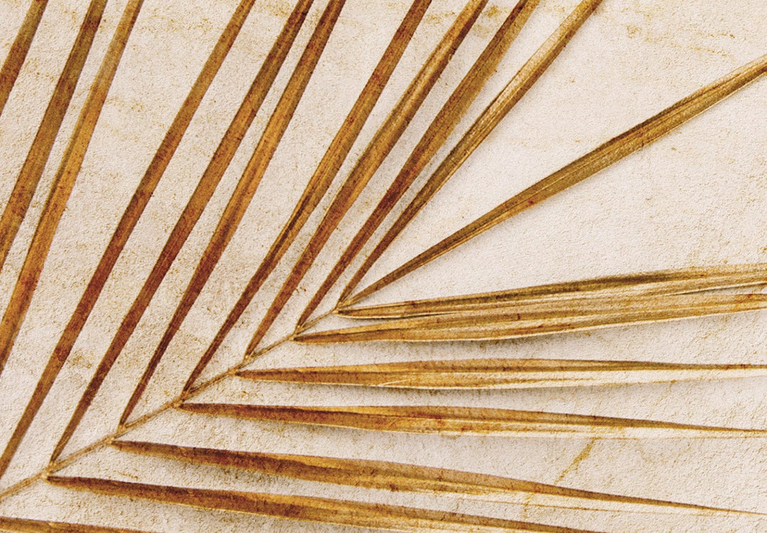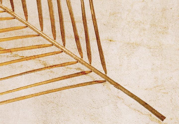 Valokuvatapetti kultaiset palmunlehdet vaaleanbeigellä pohjalla, 142730