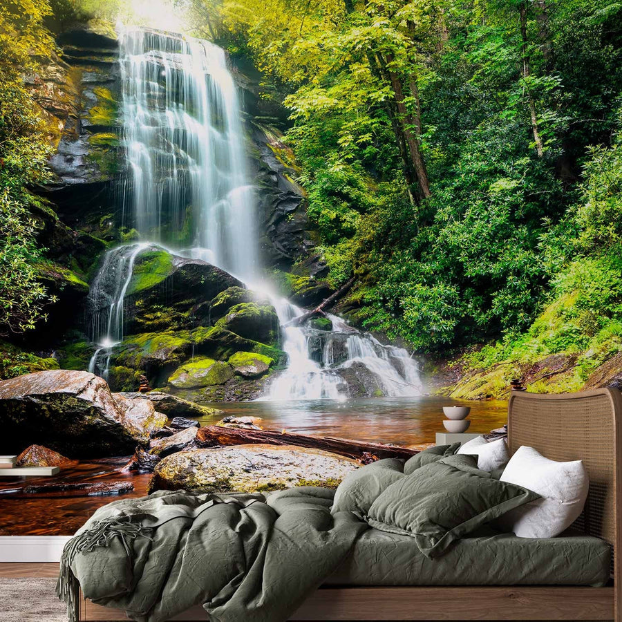 Valokuvatapetti vesiputouksella - Maisema, jossa virtaava vesiputous keskellÀ metsÀÀ, 60064