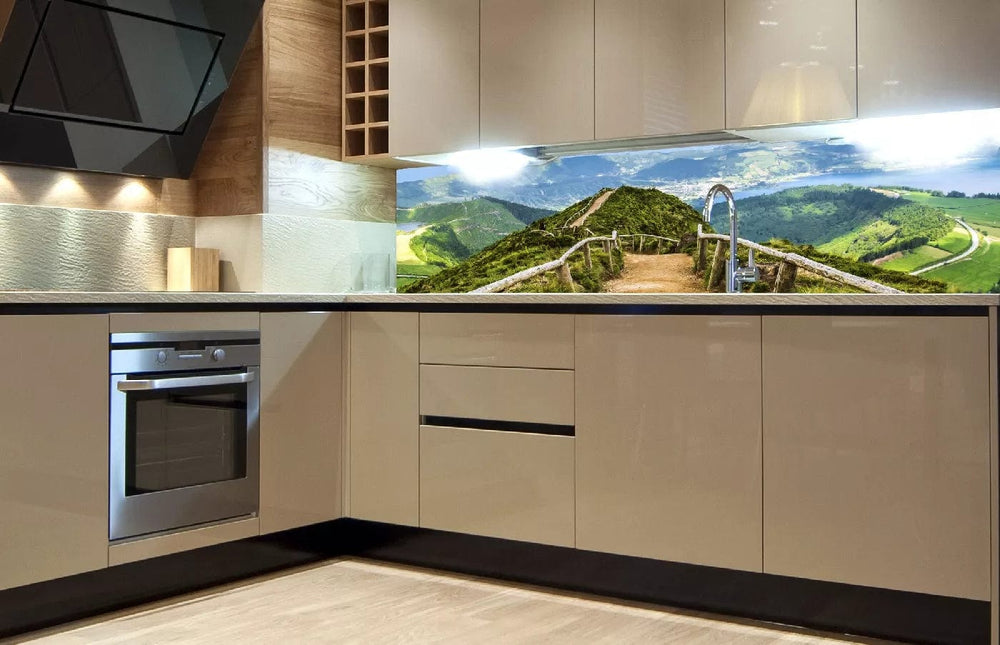Valokuvatapetti keittiöön laminoinnilla, itseliimautuvalla kalvolla ja flizelineillÀ - Meadow (350x60 cm)