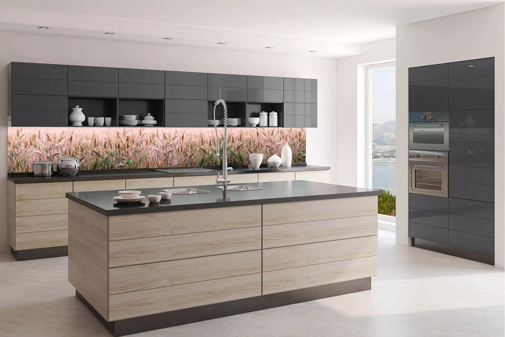 Laminoidut valokuvatapetit keittiöön - Kvieƥu lauks (350x60 cm)