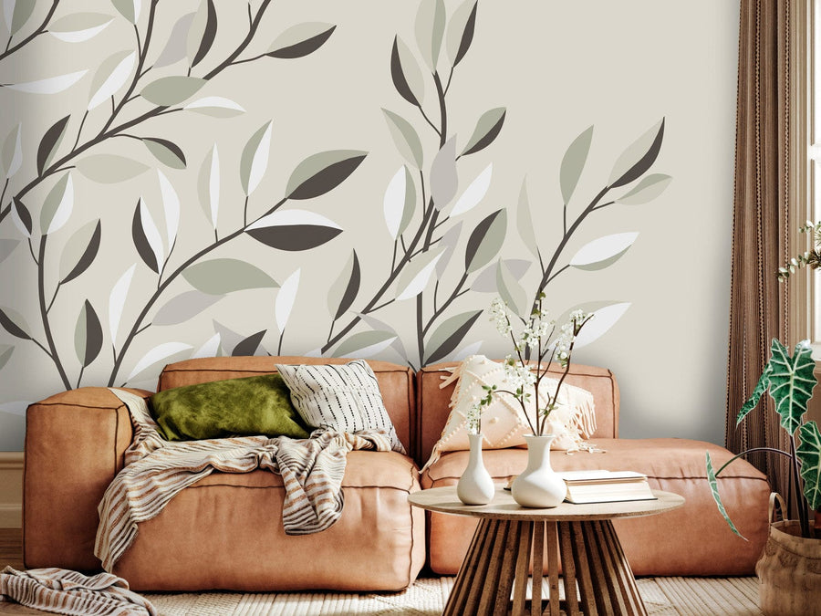 Valokuvatapetti - Lehdet lämpimällä harmaalla, 142524