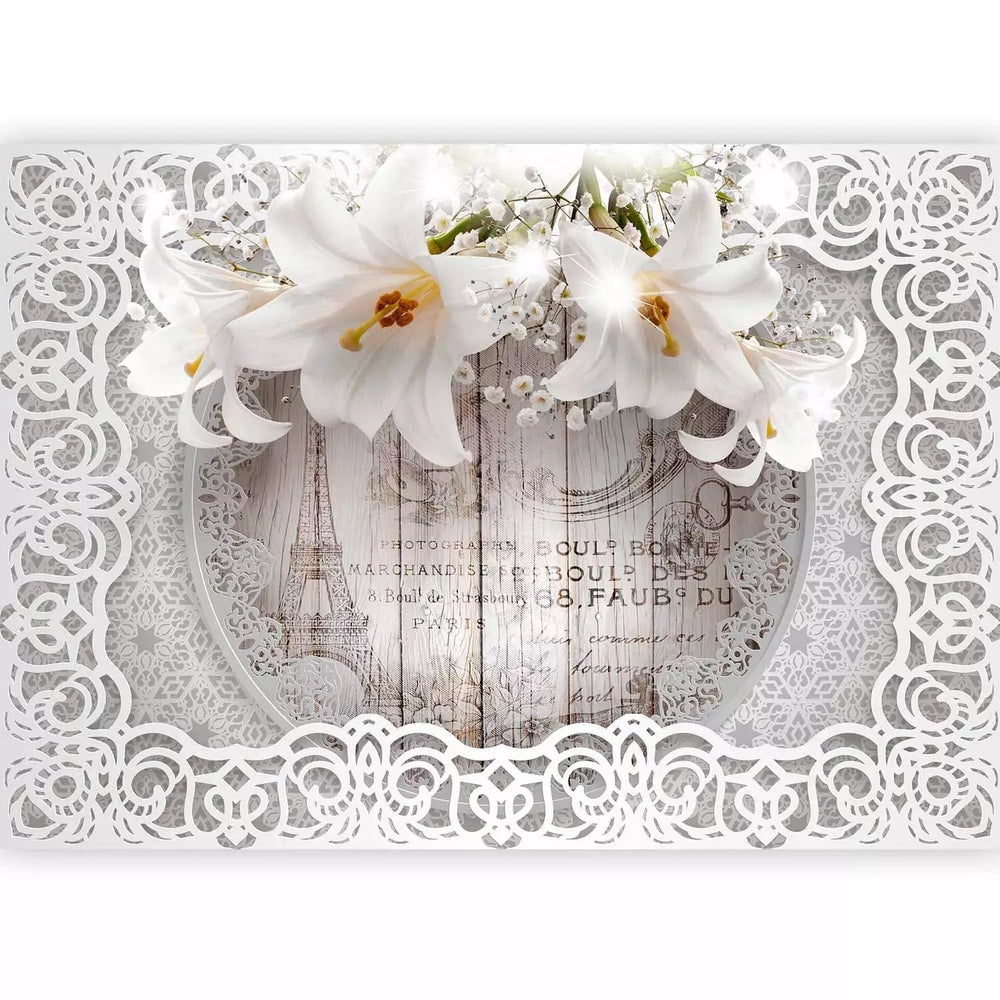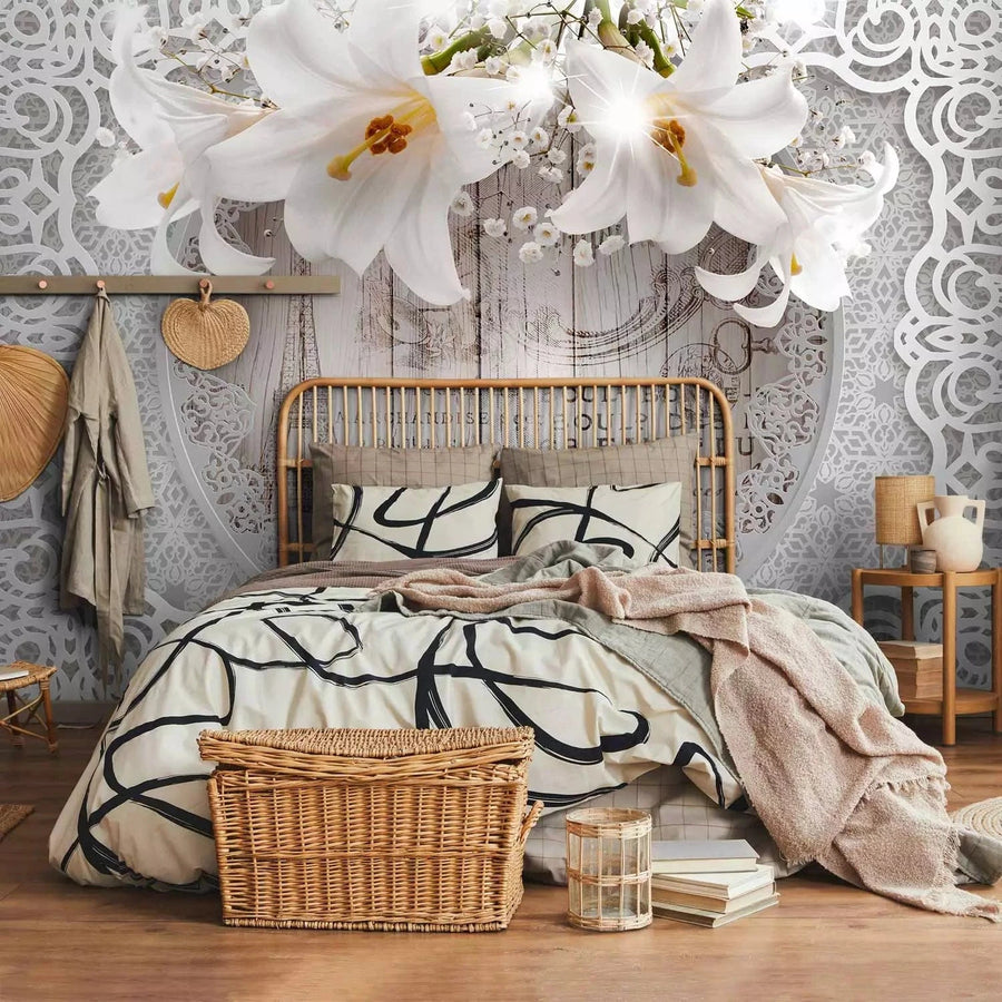 Fototapetes ar baltam lilijām uz sudraba fona - Uzticība - 60135 G-ART