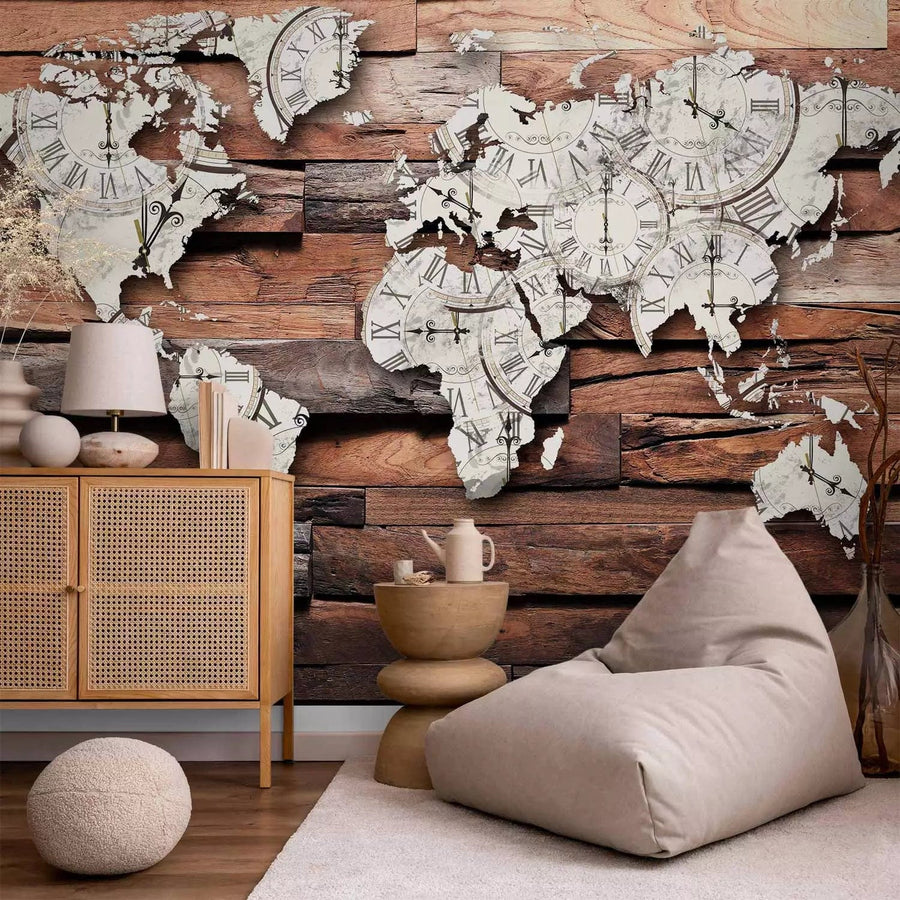 Valokuvatapetti - Maailmankartta puulle, ruskea, 63859