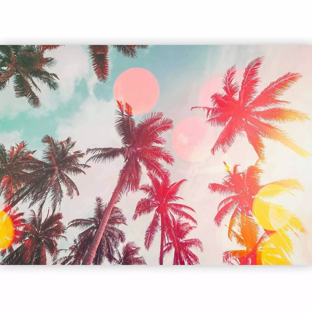 Fototapetes - Saulainās palmas - tropu lapas krāsainā gaismā - pirkt G-ART
