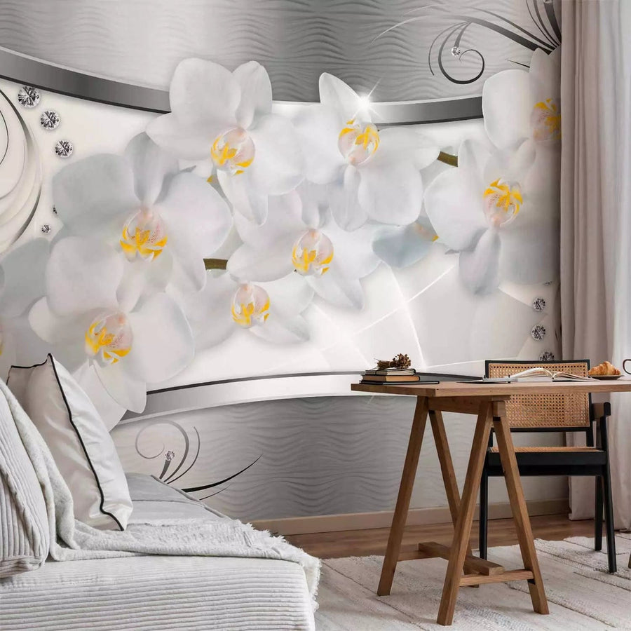 Fototapetes - baltas orhidejas uz krāšņa fona ar metālisku mirdzumu G-ART