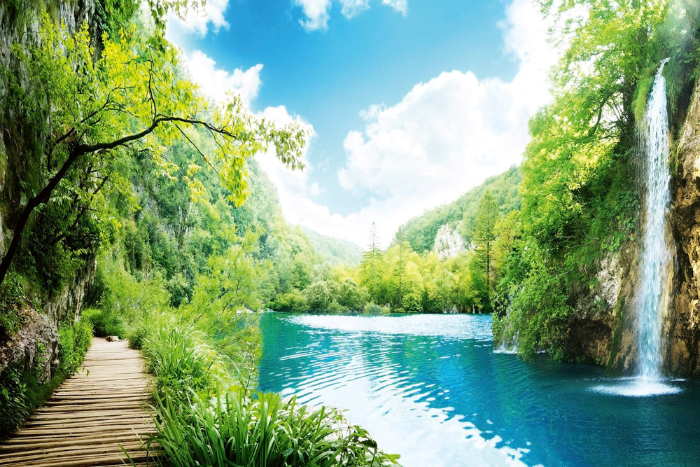 Valokuvatapetti kauniilla näkymillä luontoon, järvelle ja metsään