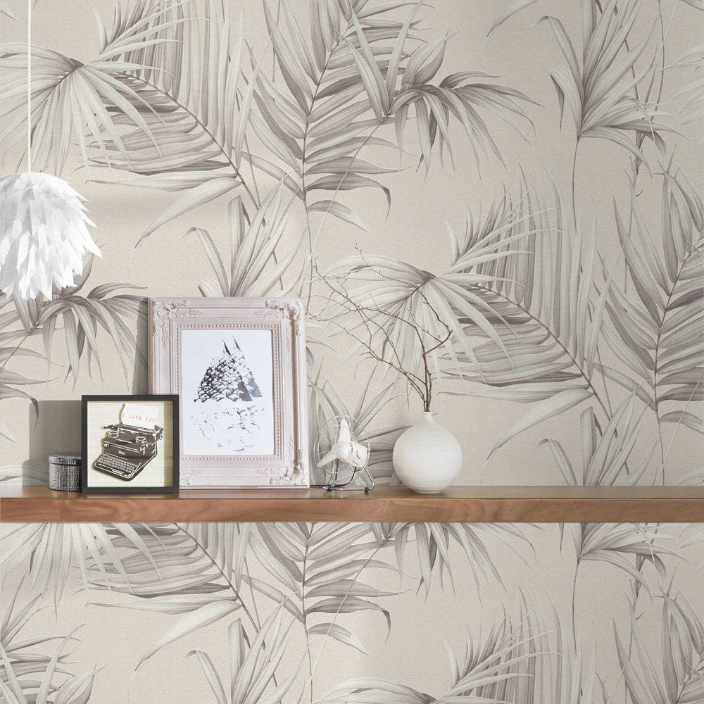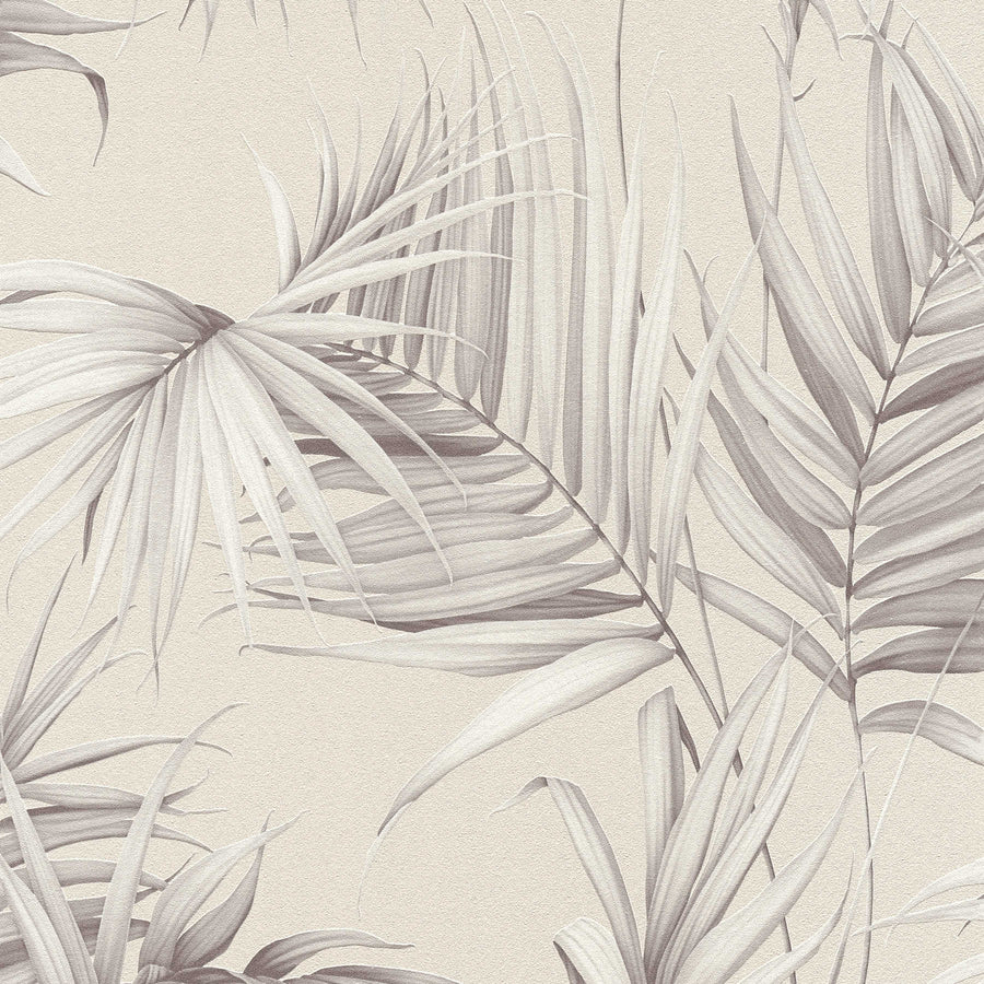 Tapetit eksoottisten saniaisten lehtien kanssa - beige ja harmaa