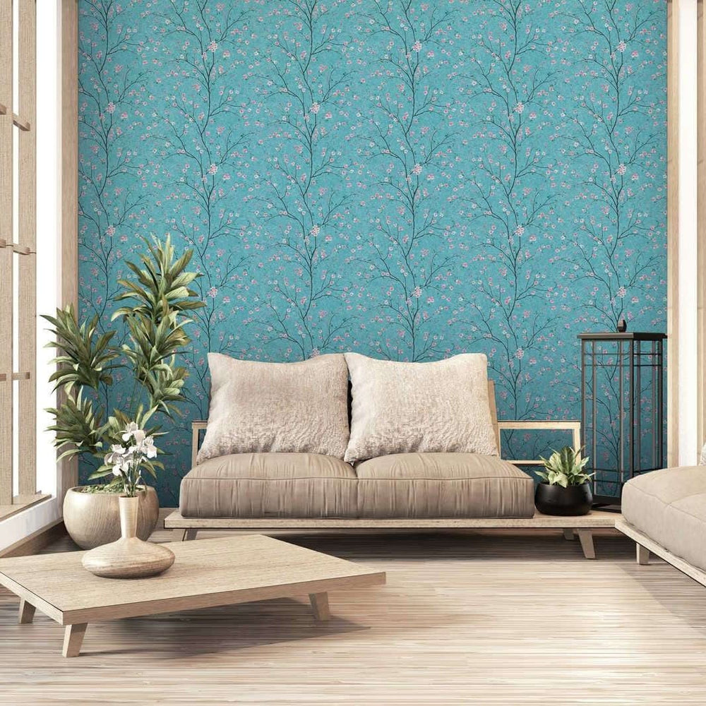 Tapetes - Japānas ķiršu ziedi zilos toņos, 379123 AS Creation