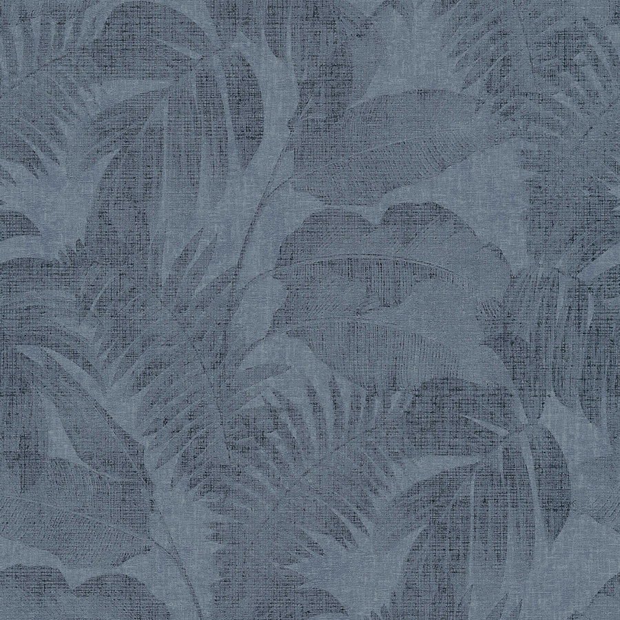 Tapetes ar linu izskatu, Boho džungļu motīvi - zilā krāsā AS 373965 AS Creation