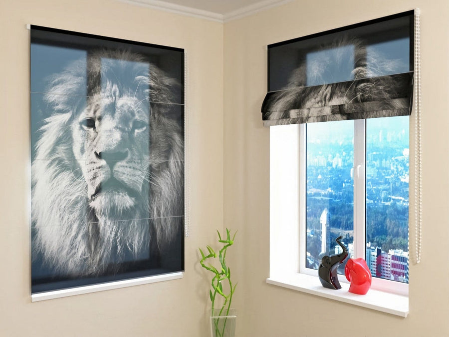 Satriecošas žalūzijas - Melnbaltā lauva - izgatavošana Tapetenshop.lv