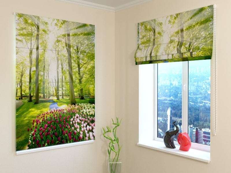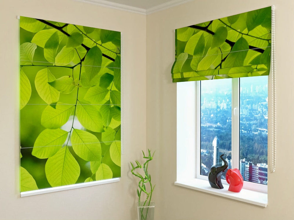 Romiešu žalūzijas - Pavasara zariņš ar zaļām lapām - svaigi zaļā  Tapetenshop.lv