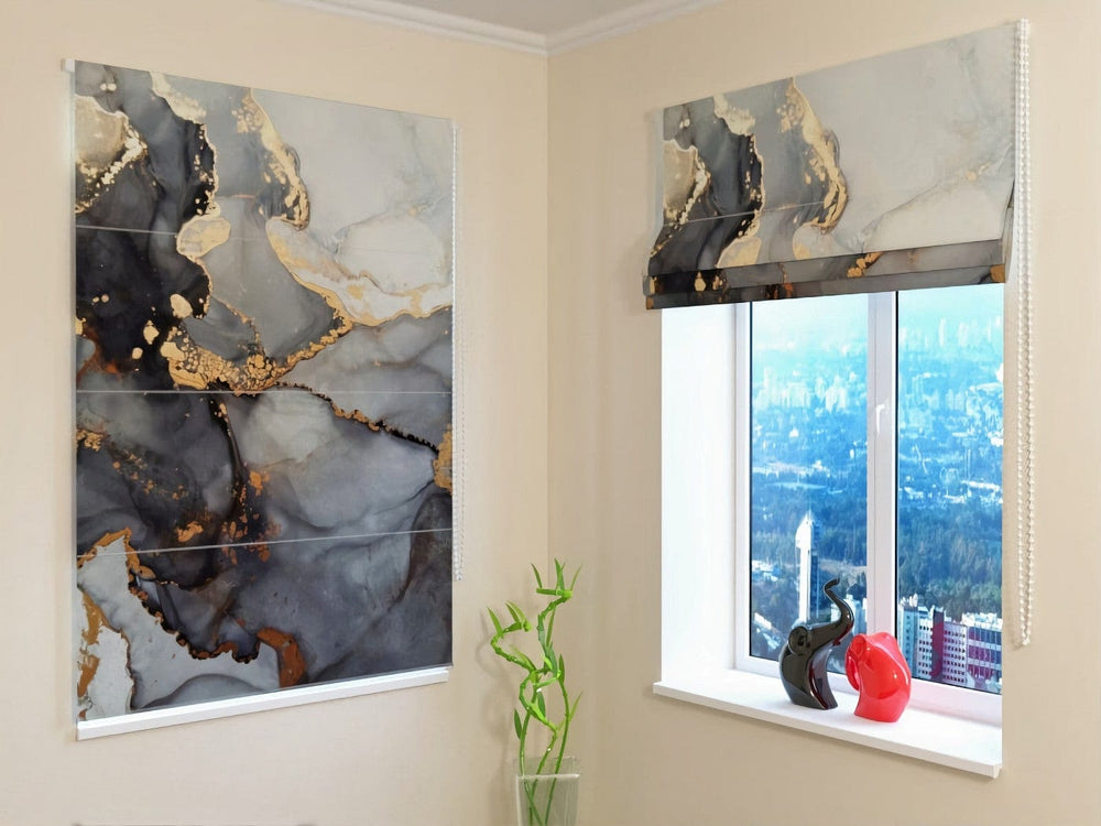 Romiešu žalūzijas ar marmora rakstu - Pelēks un zelta marmors Tapetenshop.lv