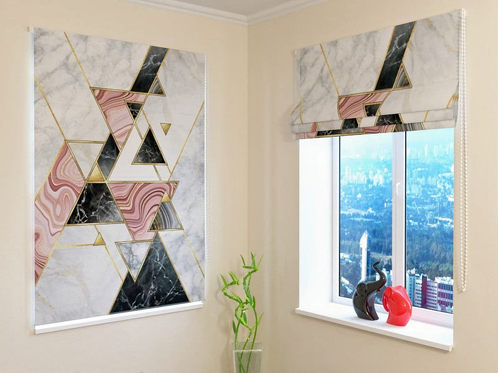 Romiešu žalūzijas ar ģeometriskam figurām - Rozā marmora mozaīka Tapetenshop.lv