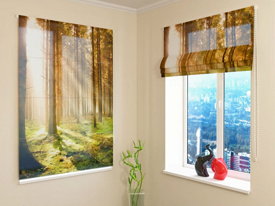 Romiešu žalūzijas ar meža skatu - Saulains priežu mežs - pasūtīt Tapetenshop.lv