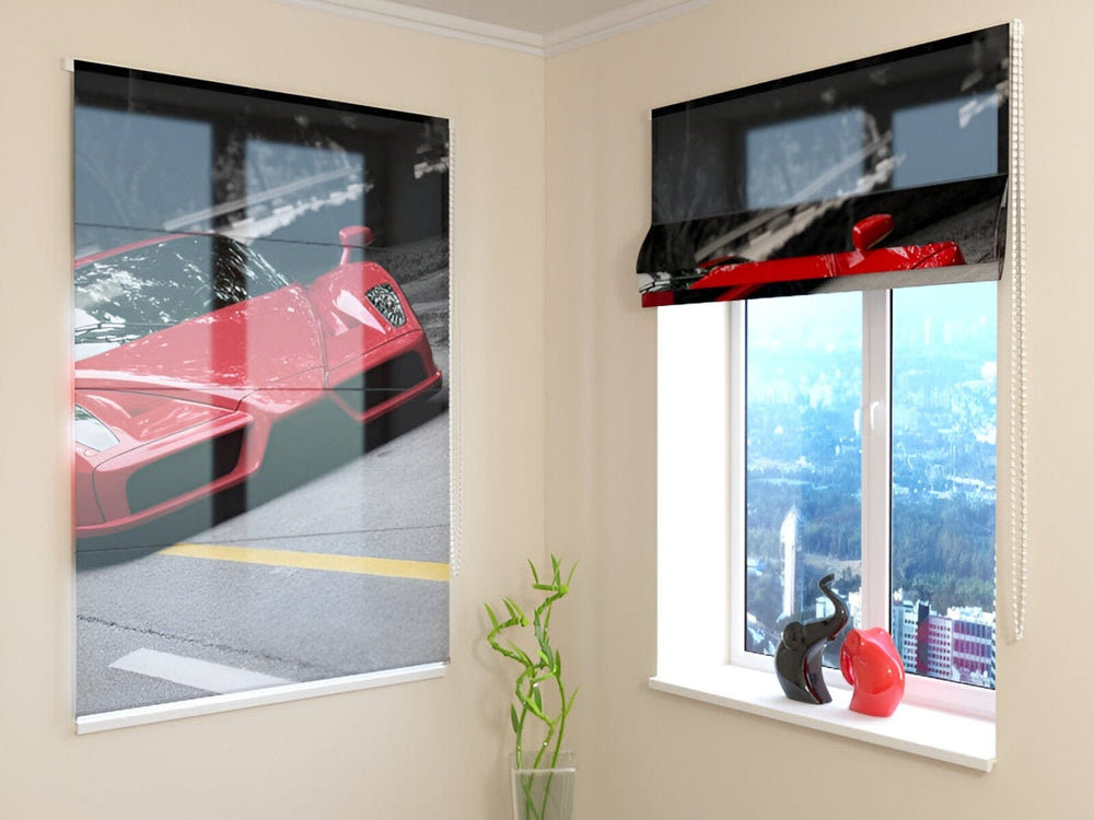 Žalūzijas jauniešu istabai ar automašīnu - Sarkans sporta auto Tapetenshop.lv
