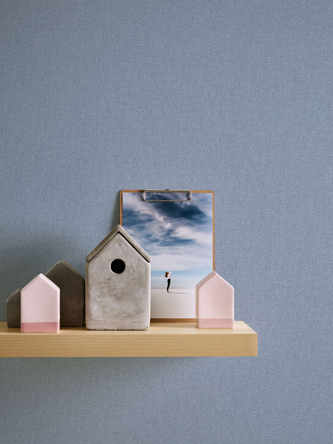 Yksivärinen tapetti kangasrakenteinen: sininen, 1400476