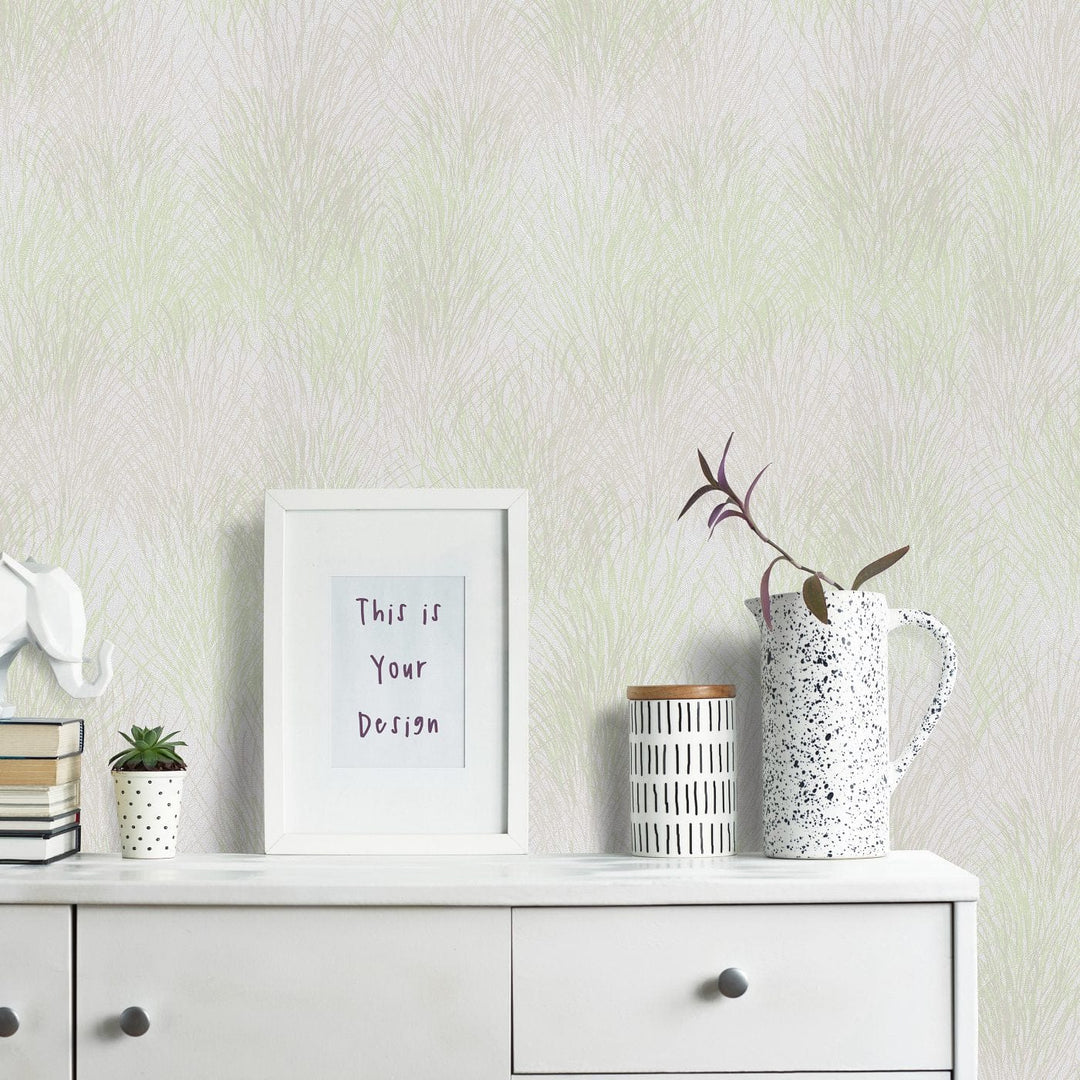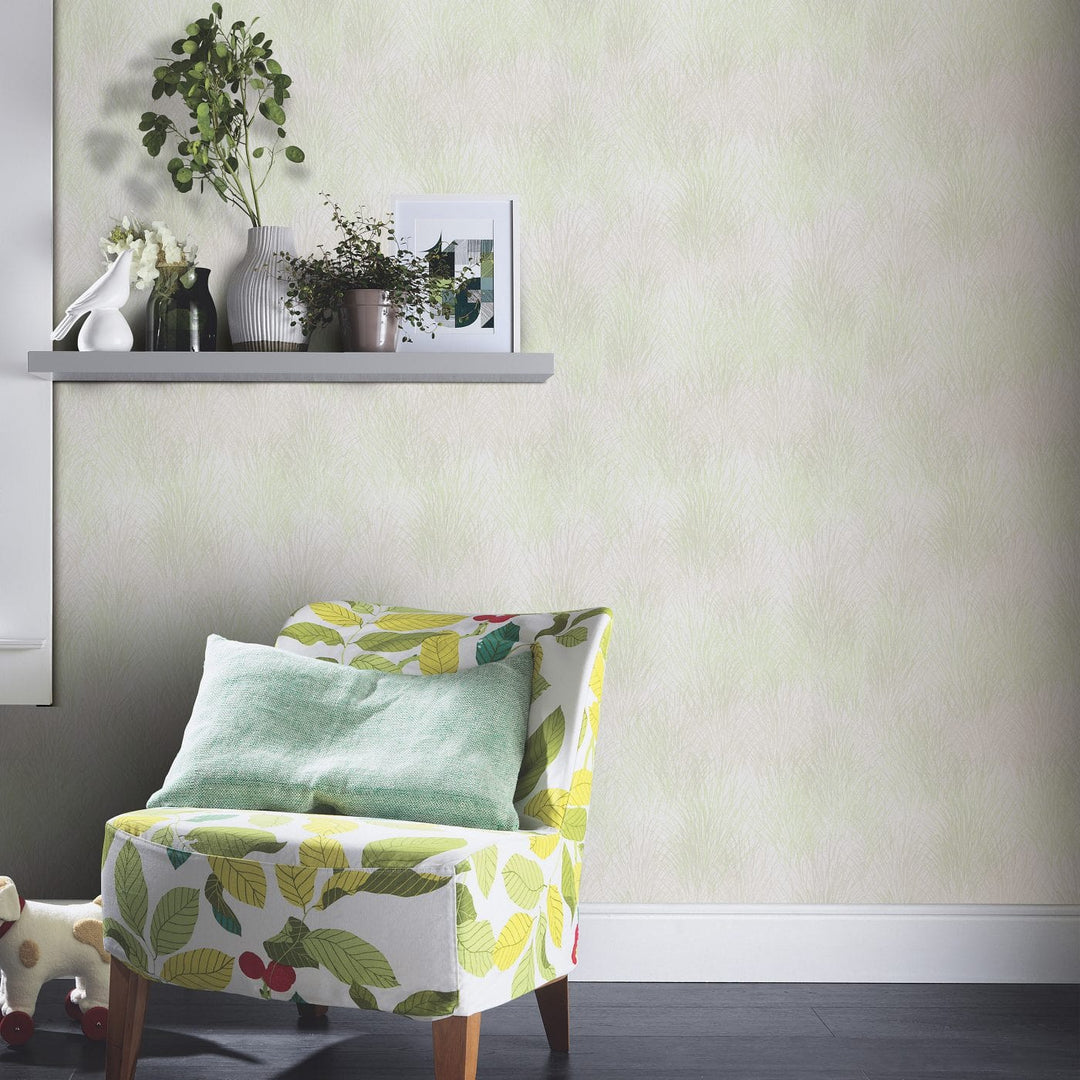 Tapetti, jossa on kiiltävä tausta ja matta luontokuvio kermanvihreällä, tuotenro. 3753323, valmistaja Erismann (Saksa). Hienovarainen luontokuvio kiiltävällä ja mattapintaisella pohjalla tuo harmoniaa huoneeseen. Materiaali: fleecetapetti. Rullan koko 0,53x10 m.