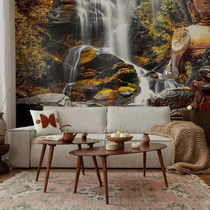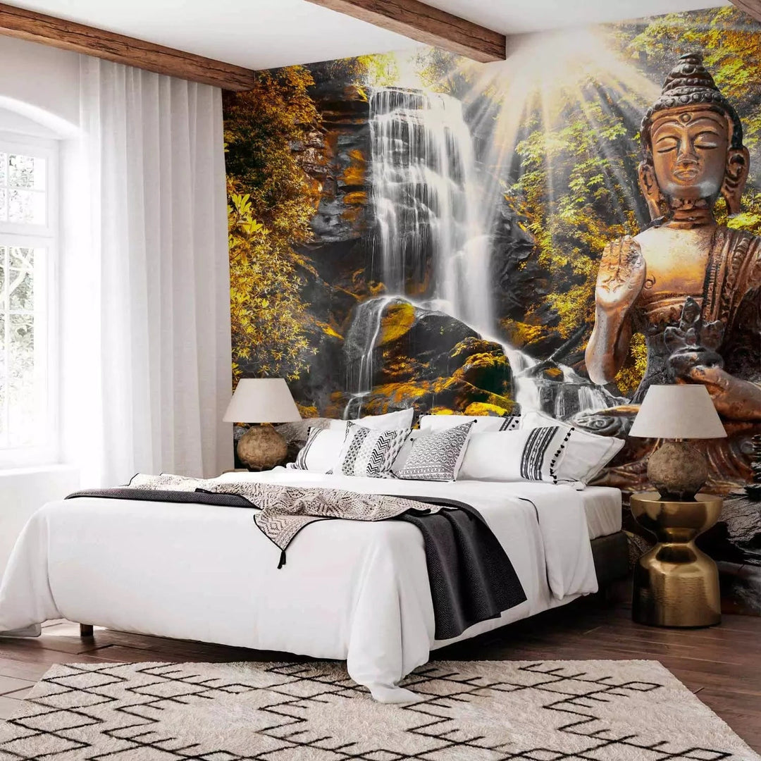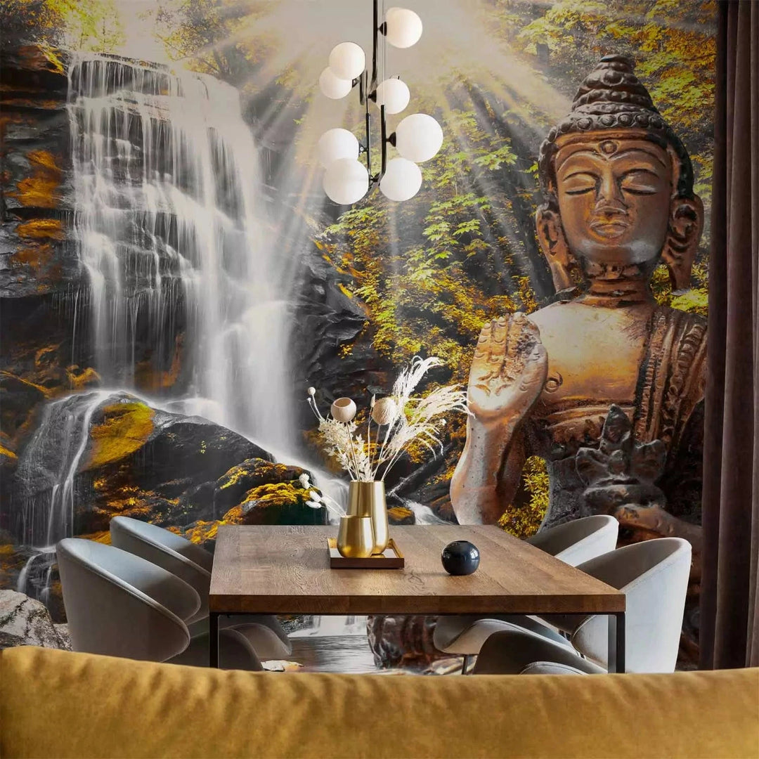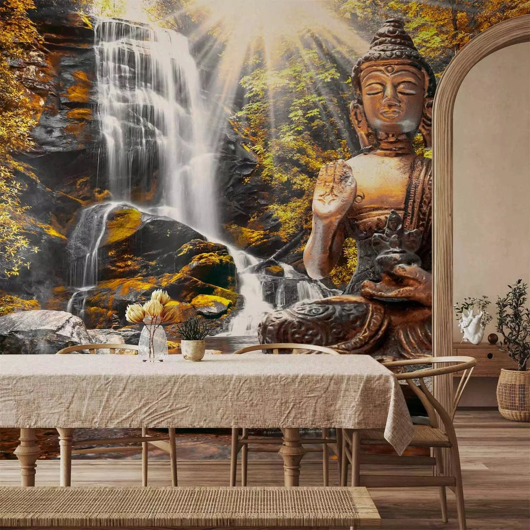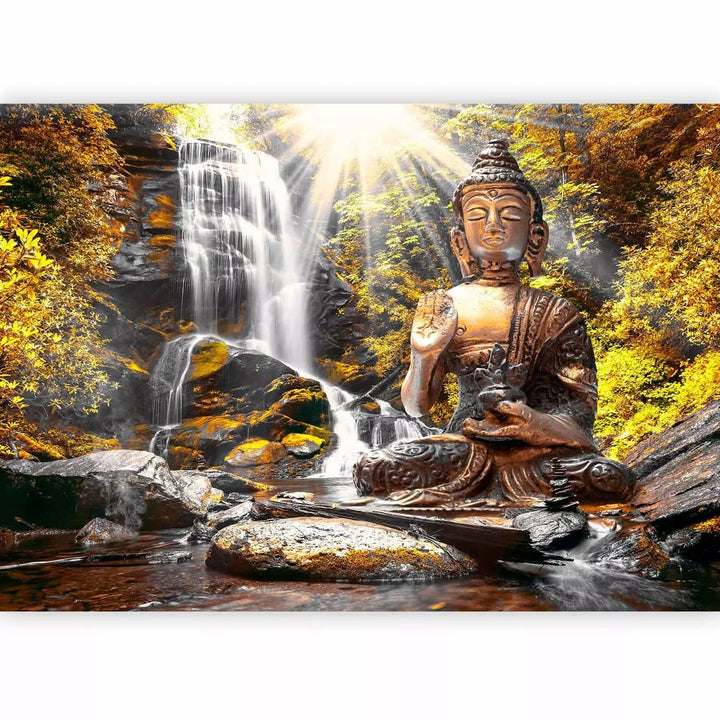 Valokuvatapetti Buddhan ja vesiputouksen kanssa - Golden Silence, 89420