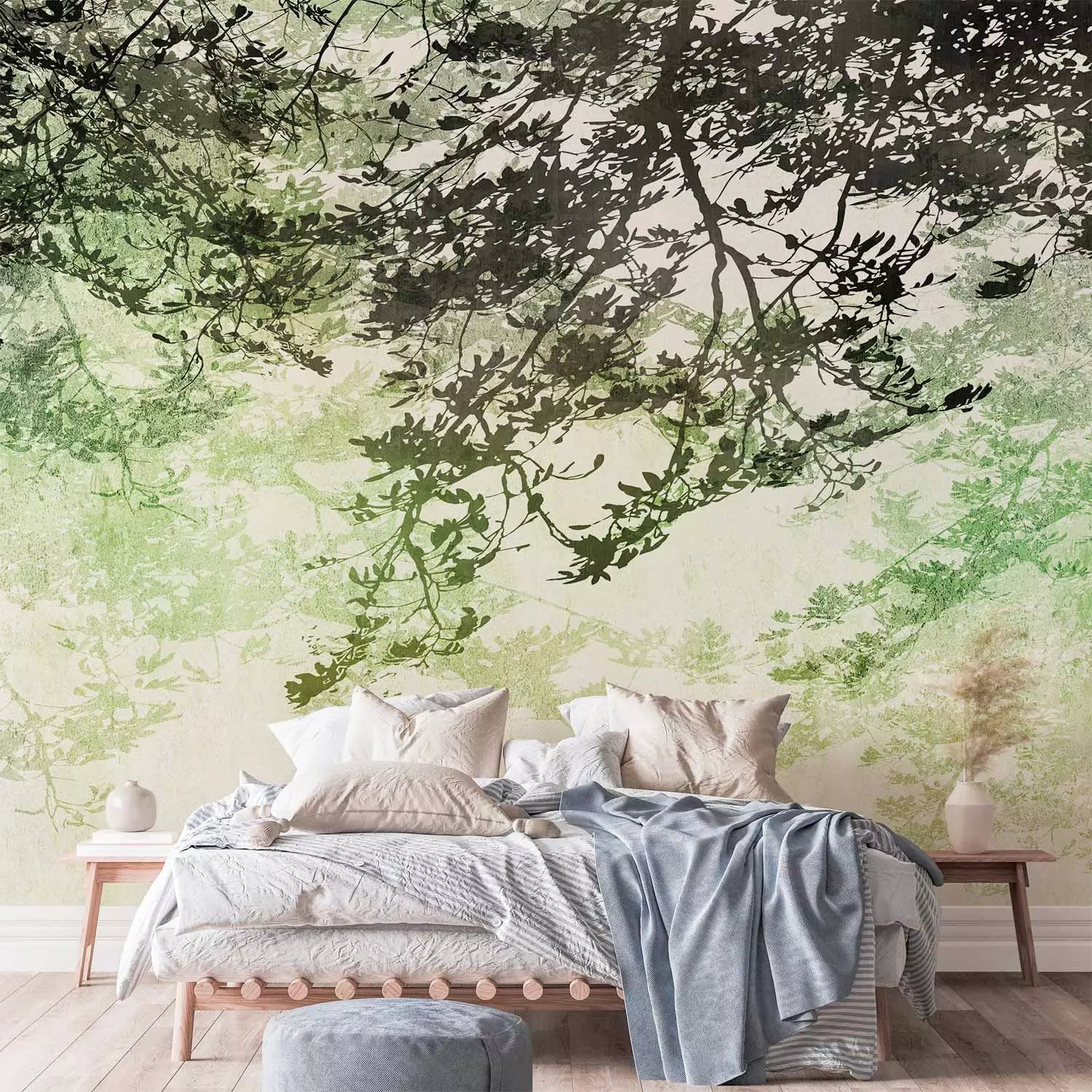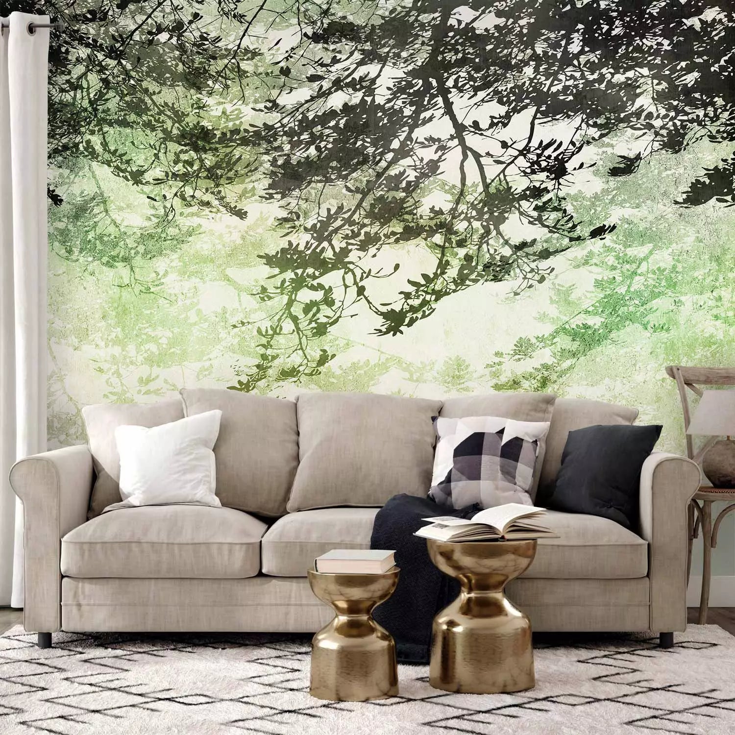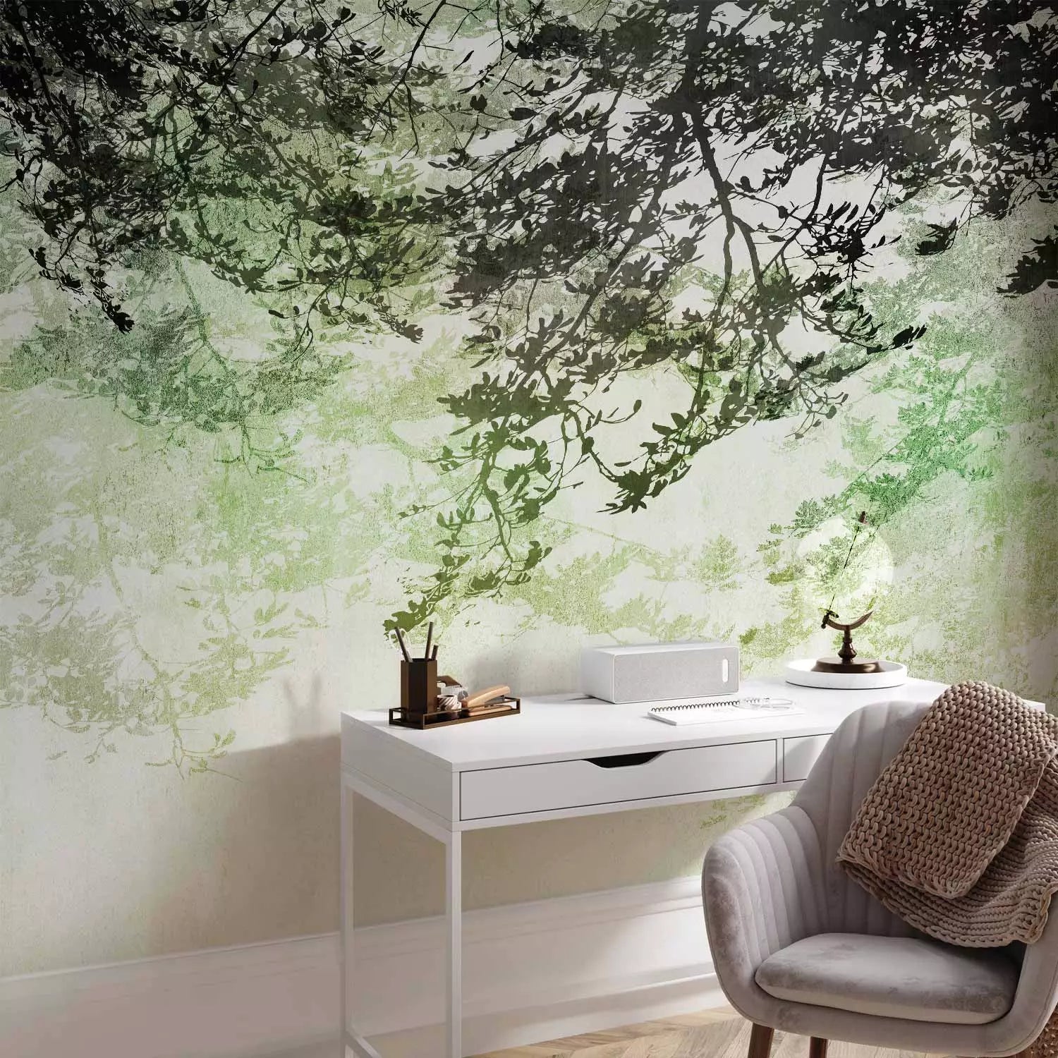 Valokuvatapetti - Lehdet vaalealla taustalla, vihreän sävyissä, 148810
