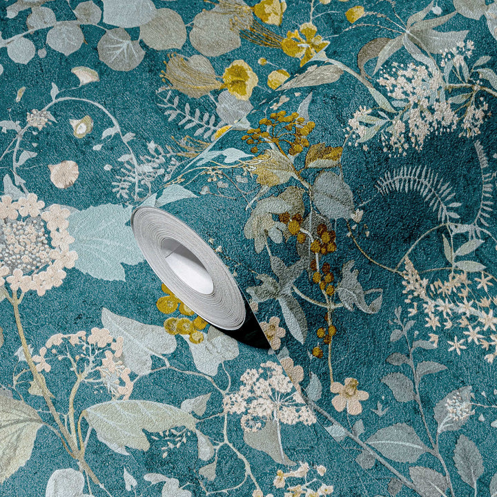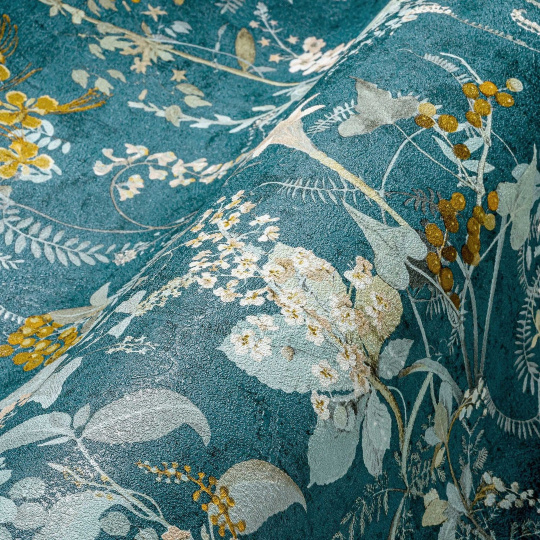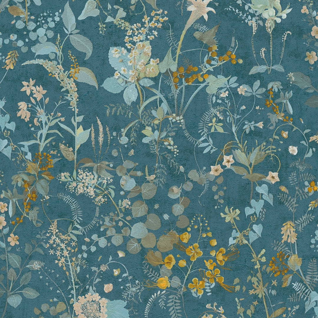Tapetti, jossa on kukkakuvio vihreän ja sinisen sävyissä - AS Creation - 1366235