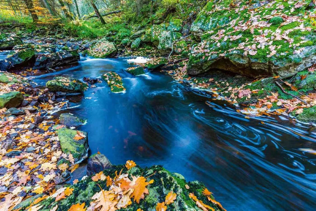 Valokuvatapetti kauniilla maisemalla - syksyn purot, 375x250 cm.