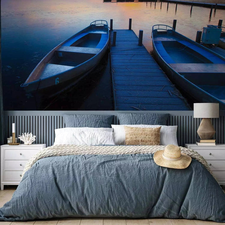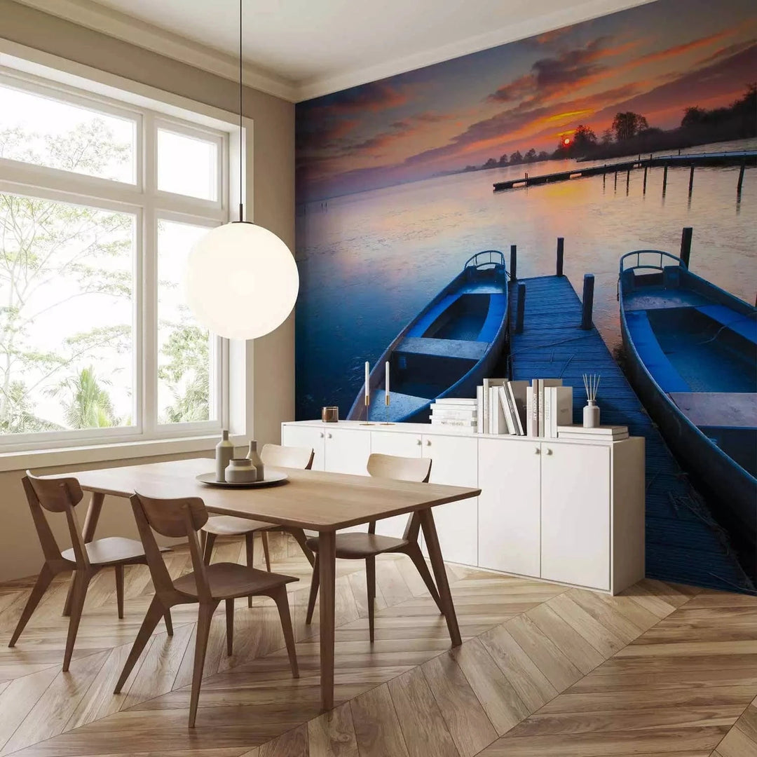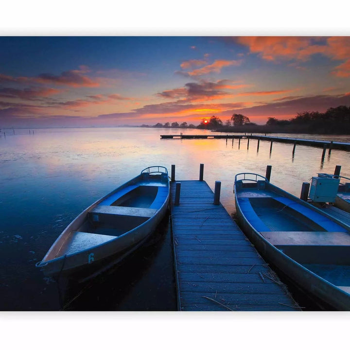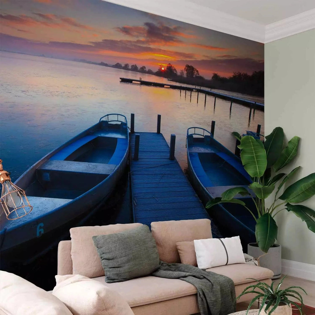 Valokuvatapetti 61660 auringonlasku, veneet ja laituri