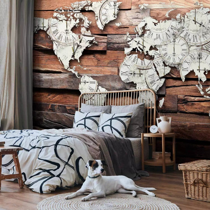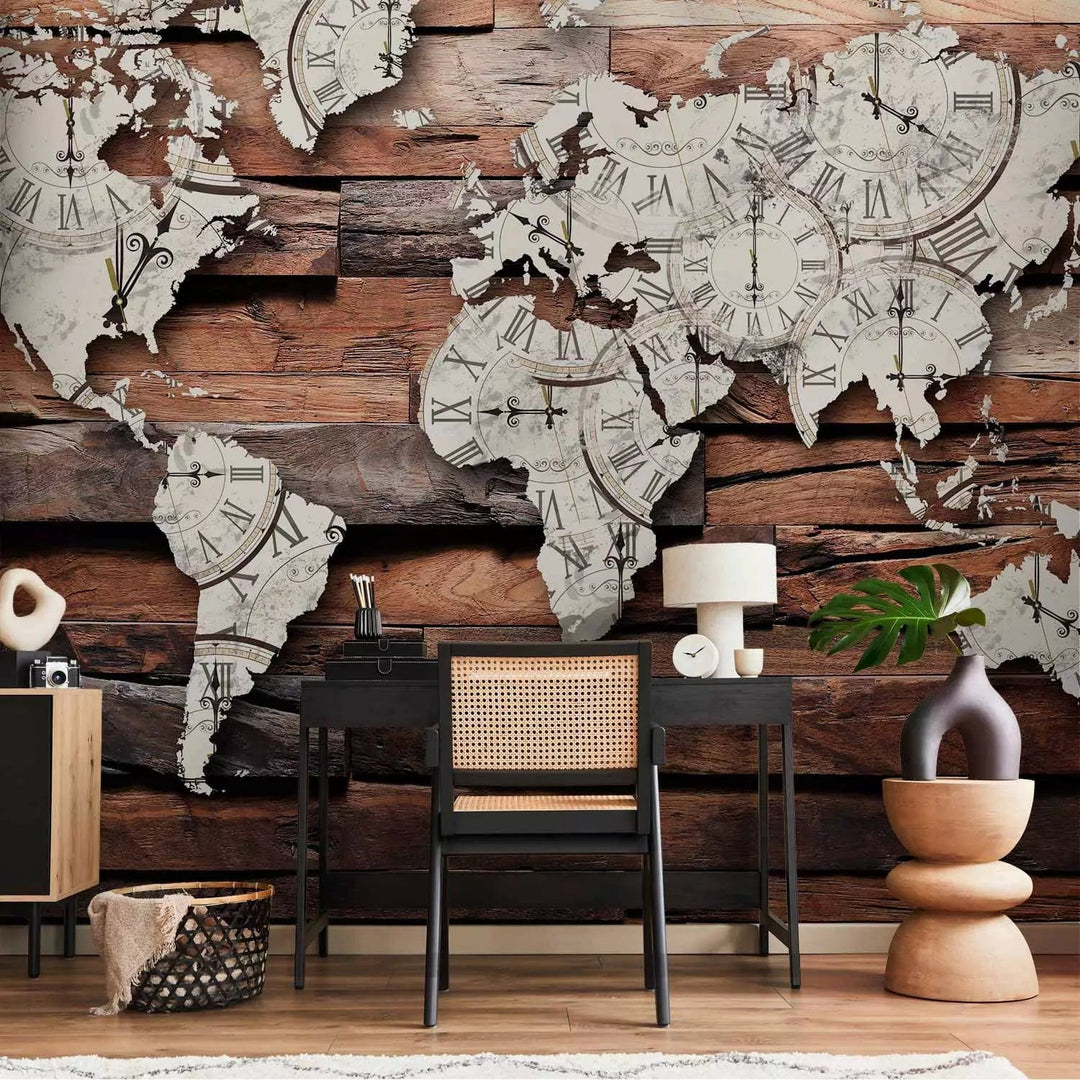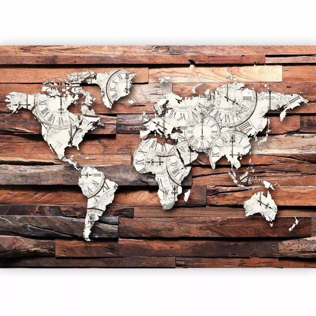 Valokuvatapetti - Maailmankartta puulle, ruskea, 63859