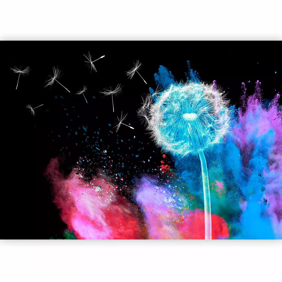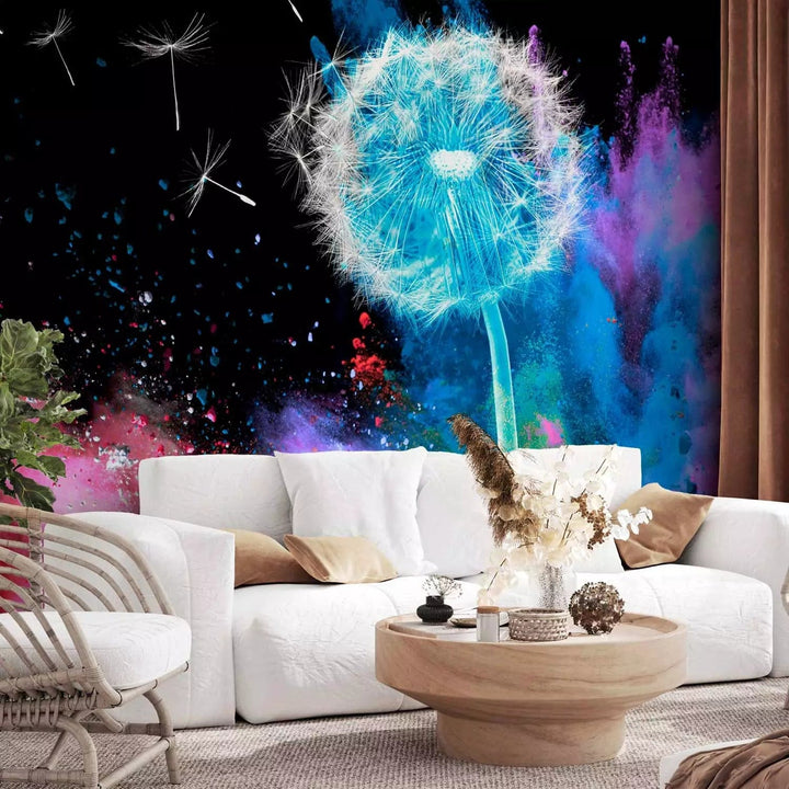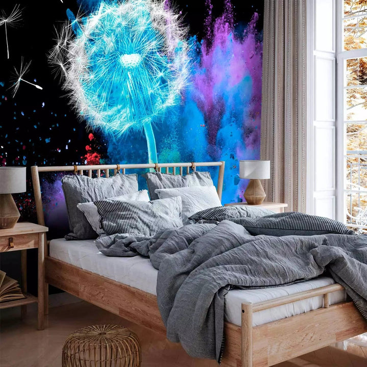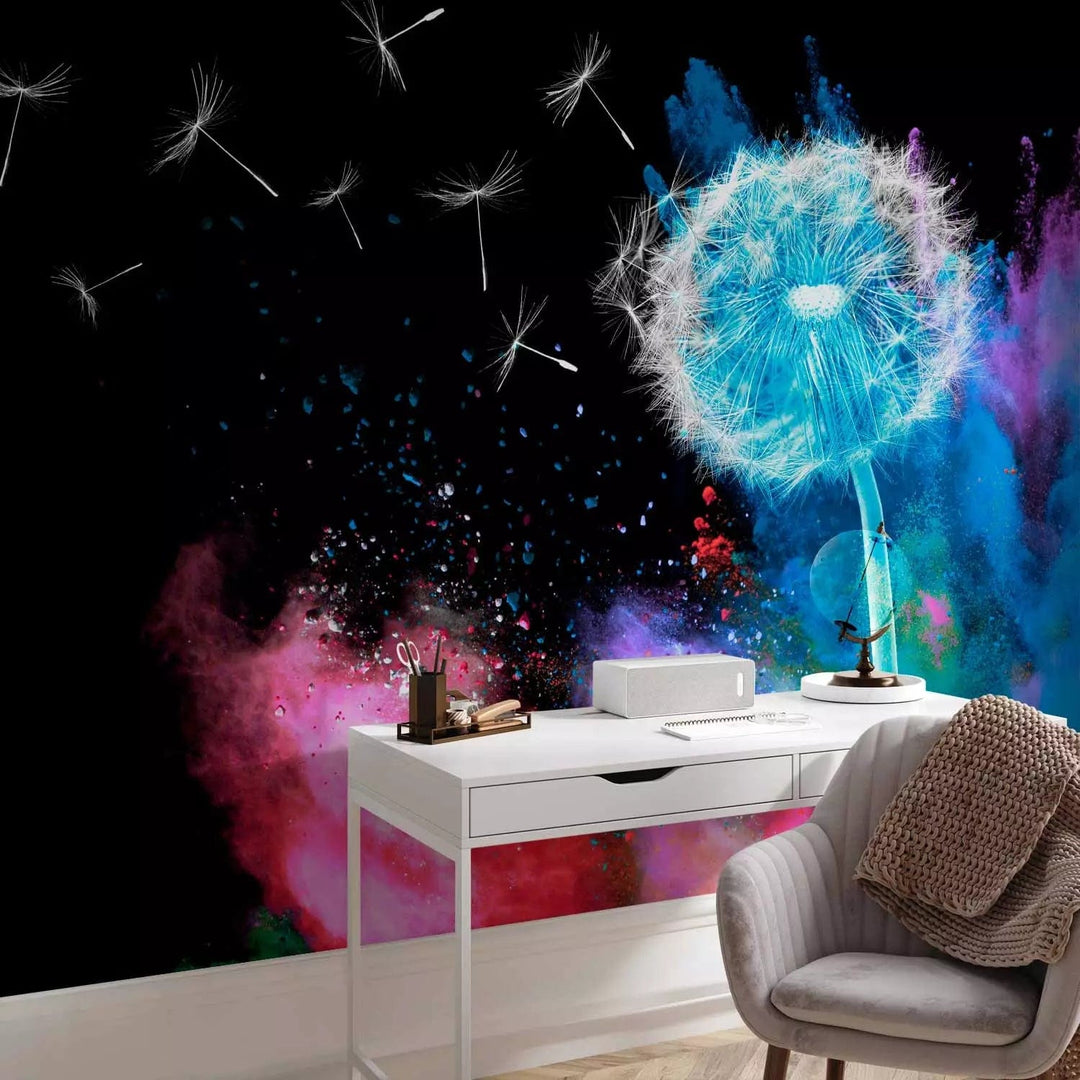Valokuvatapetti - siniset voikukat monivärisellä taustalla, 90205